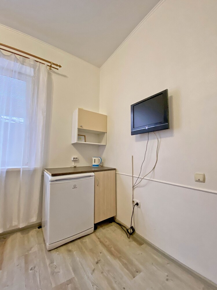 Ехали на море и для отдыха выбрали этот отель.Остановились на одну ночь.Расположение удобное-центр города.Рядом есть столовые, ресторан, магазин Магнит.Можно прогуляться до улицы с большим количеством достопримечательностей.Рядом с домом есть парковка, нам повезло и она была свободна, поэтому без труда припарковали машину.Номер у нас был на 2 этаже, семейный, на 4х: двуспальная кравать и раскладной диванчик.Комнатка конечно маловата, ведь в ней еще и холодильник и стол с табуретками для приема пищи.Но нам не нужно было для длительного проживания.В номере санузел с душем.В отеле чисто.Может есть номера и побольше, но в таком как наш, думаю можно остановиться только на день-два.Для нас тесновато.В номере есть кондиционер, это важно, т.к. на улице было очень жарко.wi-fi у нас в номере ловил плохо