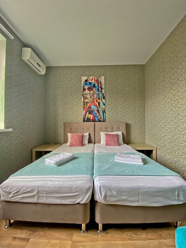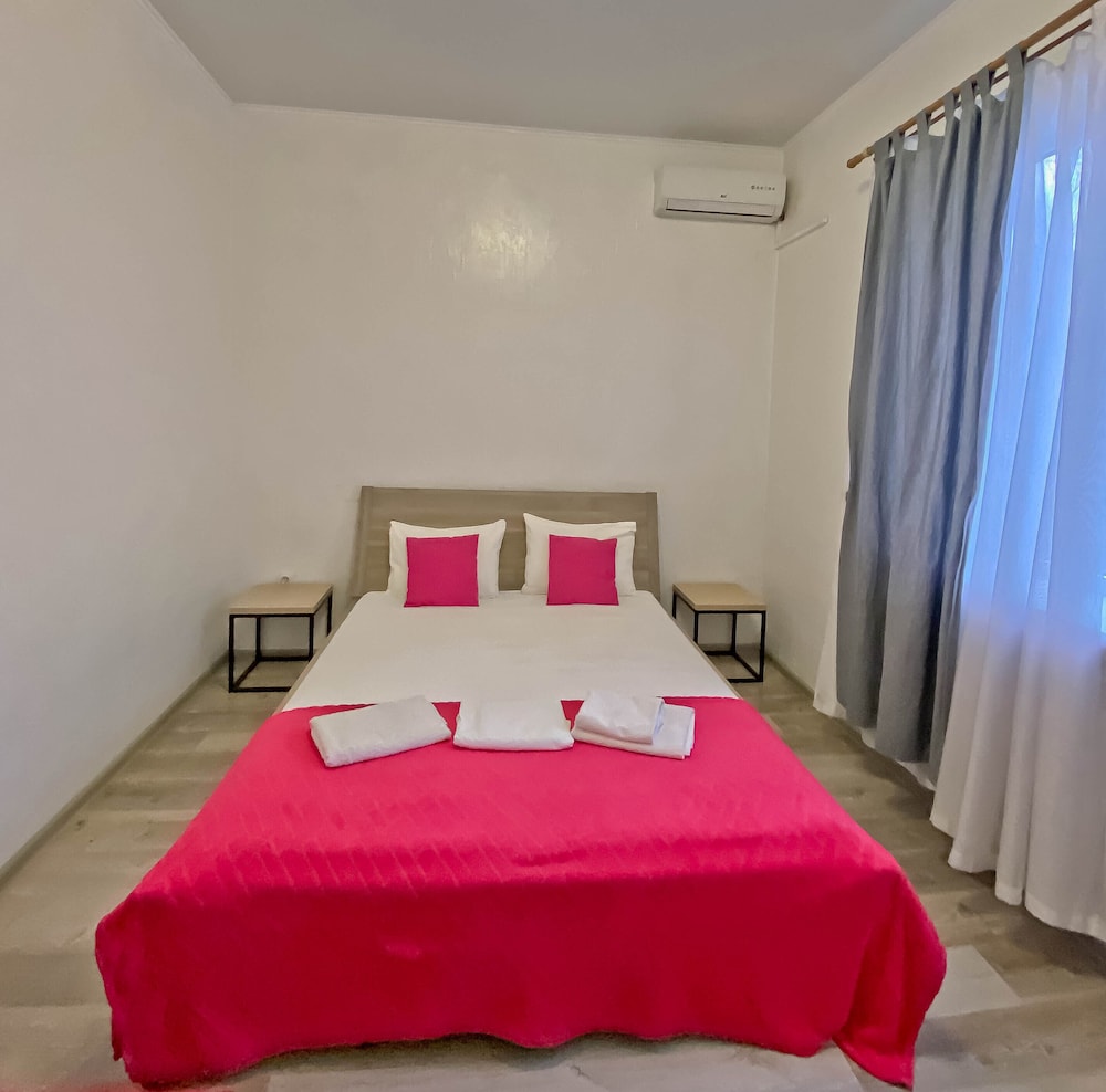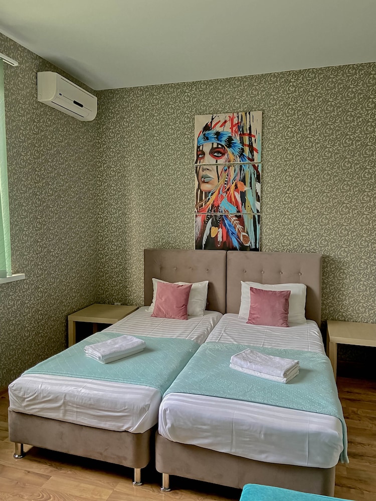 Уютный отель, есть всё необходимое, даже коробочки с лекарствами и нитками. Администраторы следят за порядком - не накурено, нет громкого шума, хотя рядом отдыхала большая компания. Тесноват семейный номер для двух взрослых и двоих детей, до удобной остановки с детьми надо немного пройти.