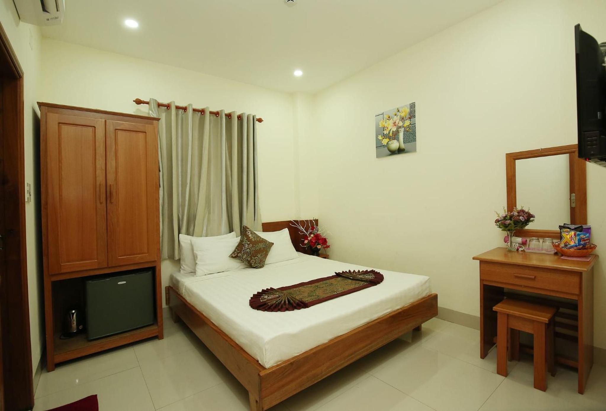 Each room at Bao Chau Hotel is equipped with modern amenities including air conditioning, a flat-screen TV, and a private bathroom with free toiletries and a hairdryer. Guests can also enjoy the luxury of bathrobes and slippers in the shared bathroom.