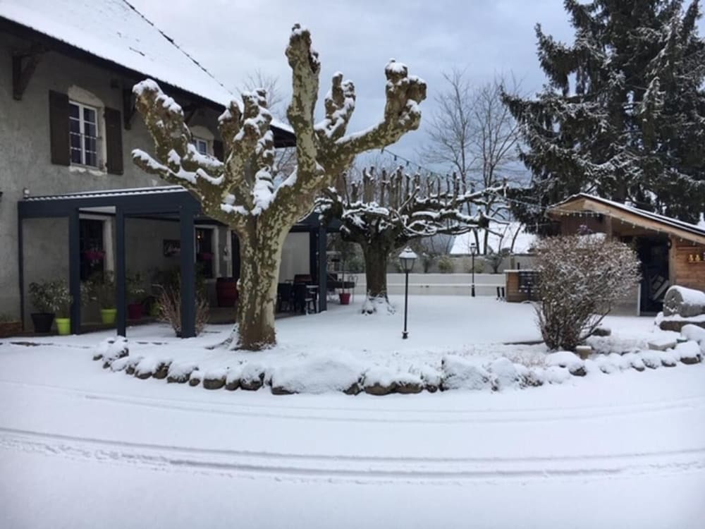 Parfait hôtel à 10 mn de la Viarhôna 😊 Accueil au top, chambre parfaite, literie impeccable, sdb très propre et moderne, wc séparé. Très calme et noir absolu volets fermés 👍 pareil pour le restaurant au top également: viande locale, de qualité et service parfait. Petit-dej nickel aussi. Ne cherchez plus, vous avez trouvé 😉 et nous aussi 💕
