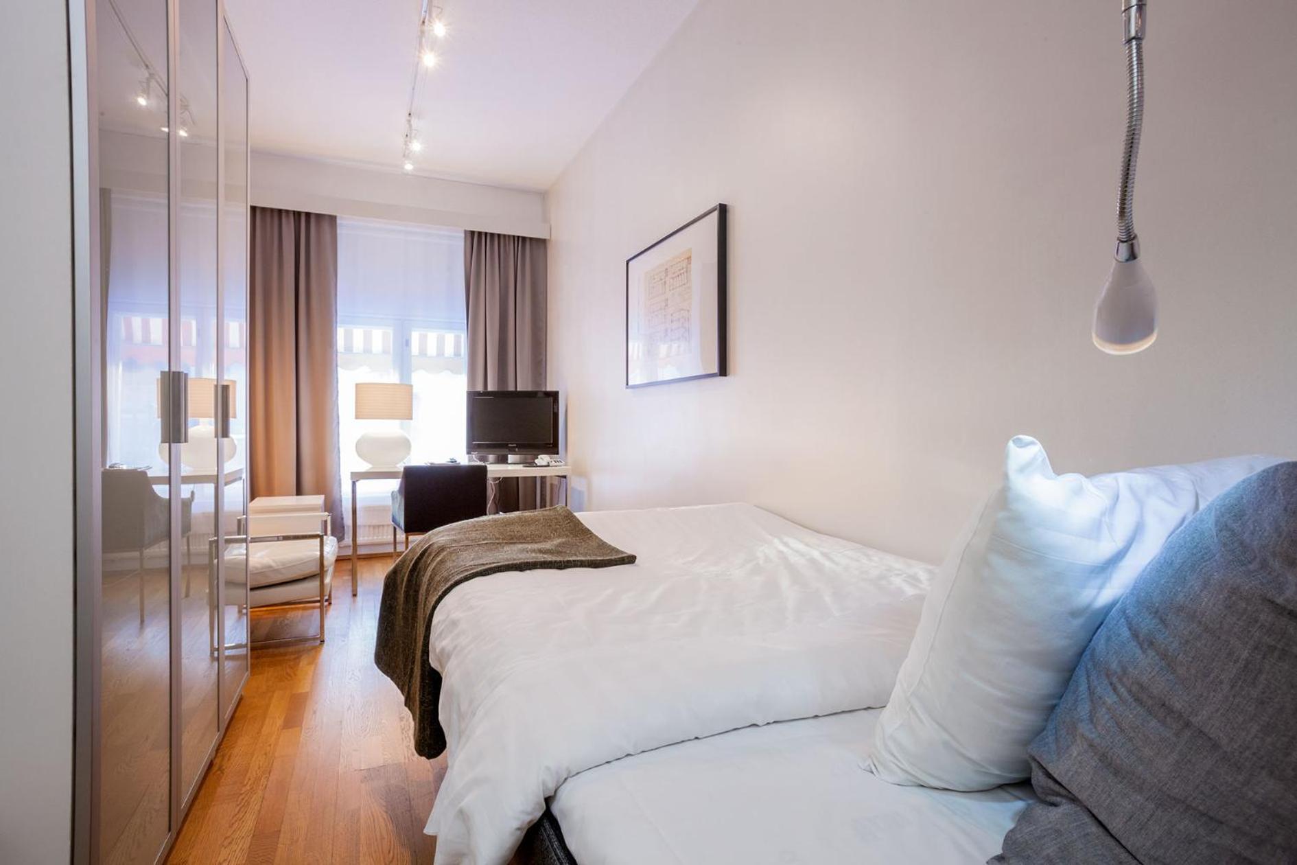 Ont om hängare i skåpet. Borde finnas 1 klädhylla till. Lite kallt på rummet även om man stängde av luftkonditioneringen.