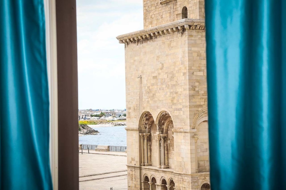 Das Hotel liegt direkt neben der Kathedrale von Trani, hat schöne Zimmer mit einem sehr guten Bett und bietet Blick auf das Meer und/oder den Hafen. Die Zimmer sind sehr gut isoliert und es wird peinlichst sauber gereinigt. Das Frühstück ist ein kleines Erlebnis und die Freundlichkeit der Mitarbeiter unübertroffen. Wer also nicht gerade ein Badehotel sucht ist hier bestens aufgehoben. Festzuhalten ist, dass das Hotel keinen eigenen gesicherten Parkplatz anbietet, man aber für 4€/Tag relativ nah auf der Piazza Manfredi gut aber unbewacht parken kann.