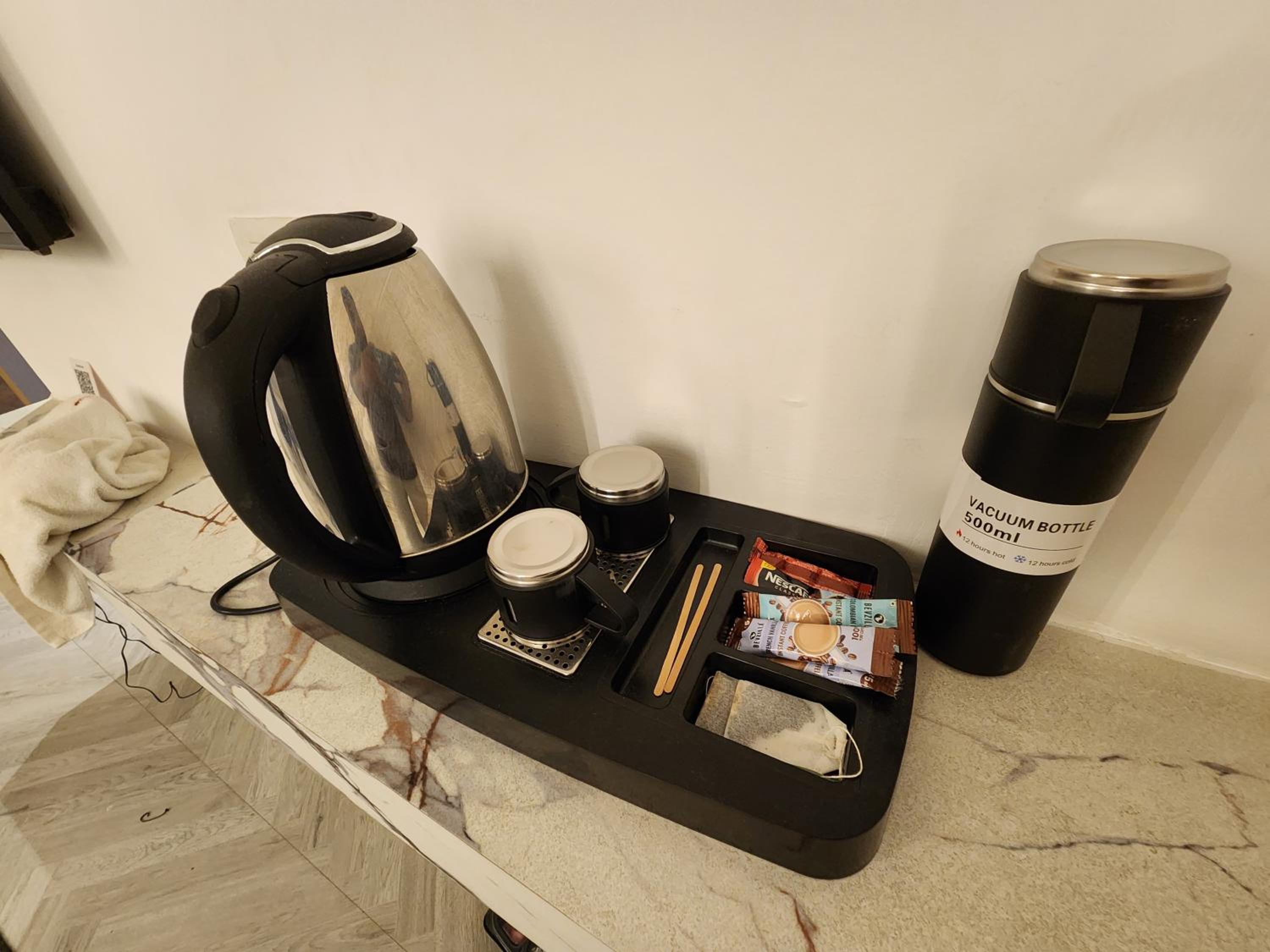 Staff. Receptionist was very rude and kind of I don’t care. Kept me waiting for an hour to check-in. Plenty of people from Canara bank checked out in front of me and even though receptionist gentleman said no room available before 12. Paper rule. Come on. He should learn basics of handling guests.