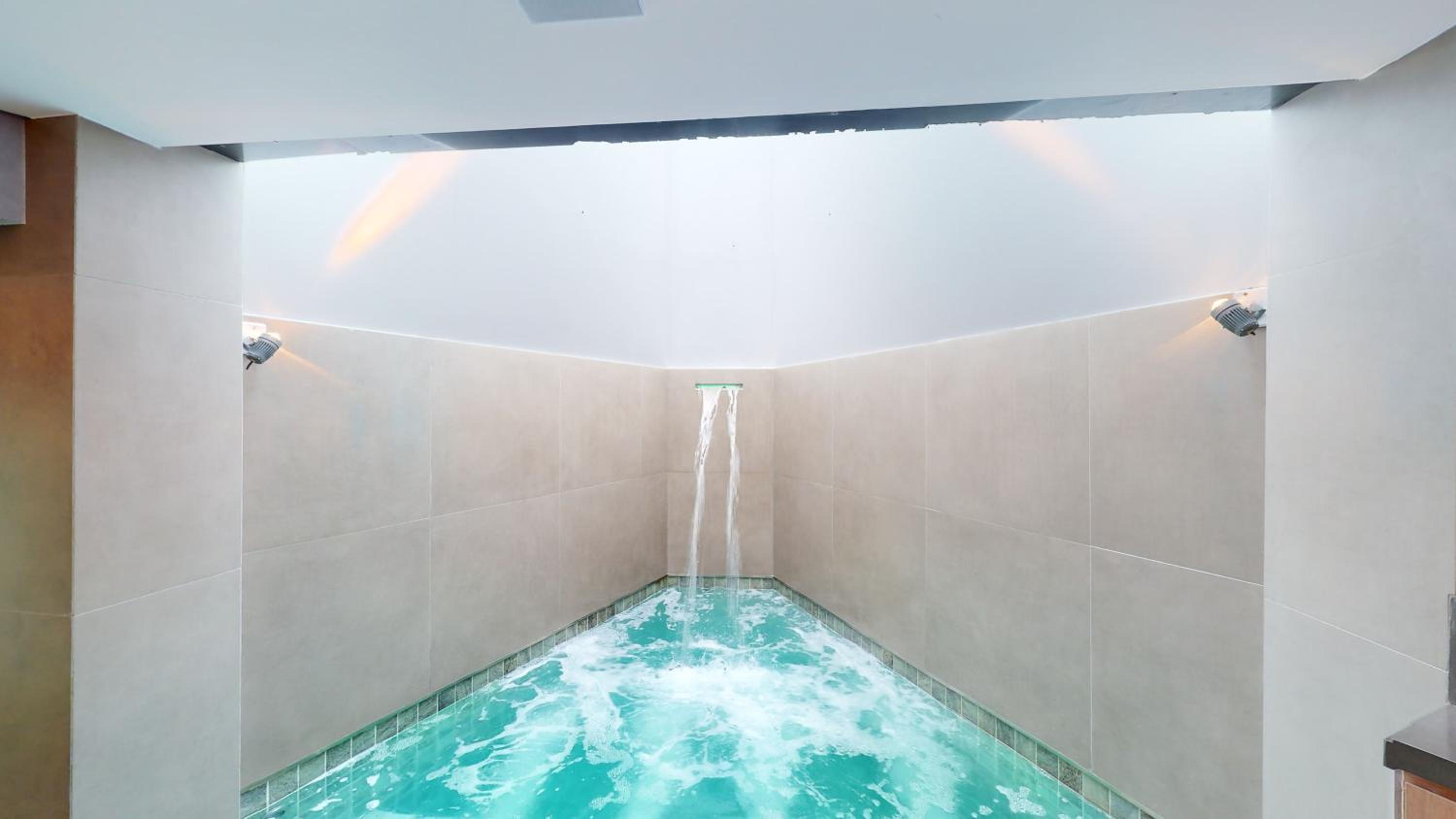 A piscina é maravilhosa! Tamanho ótimo, temperatura da água perfeita! Chuveiros e banheira de hidromassagem também muito bons!