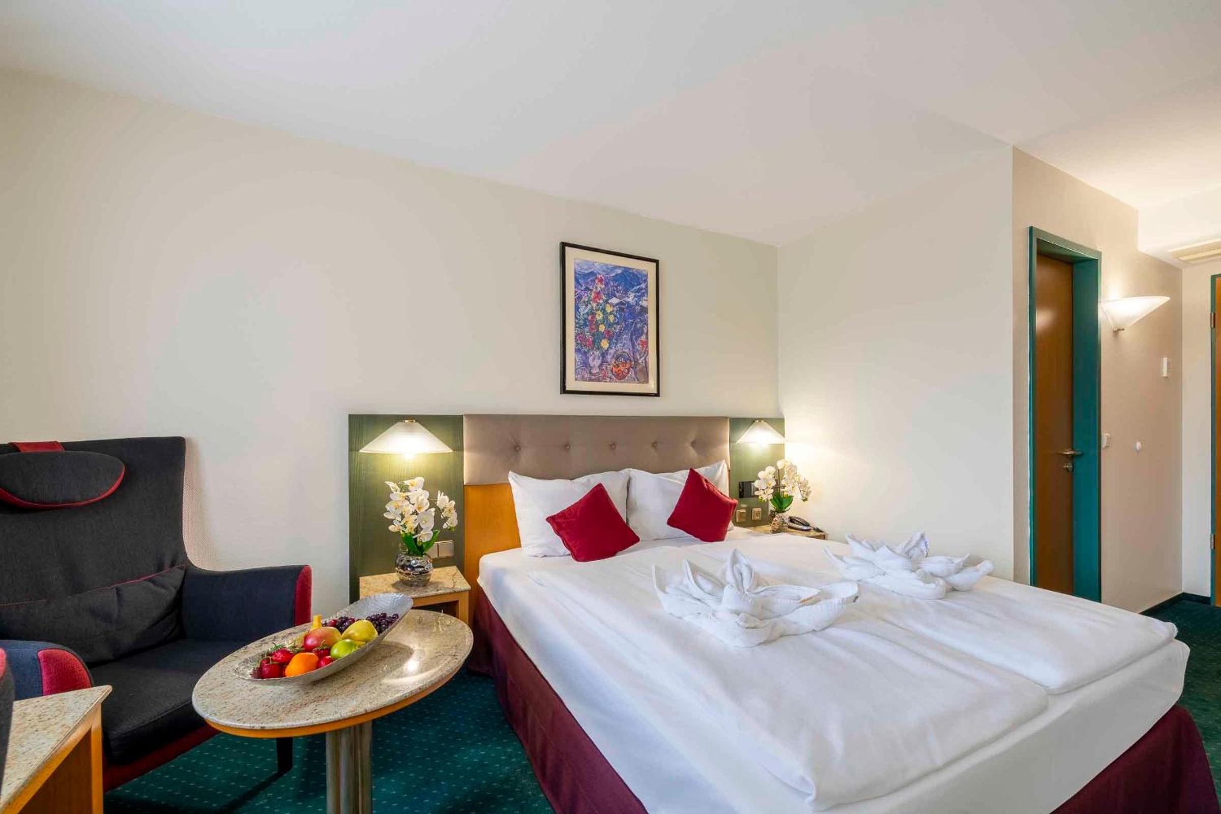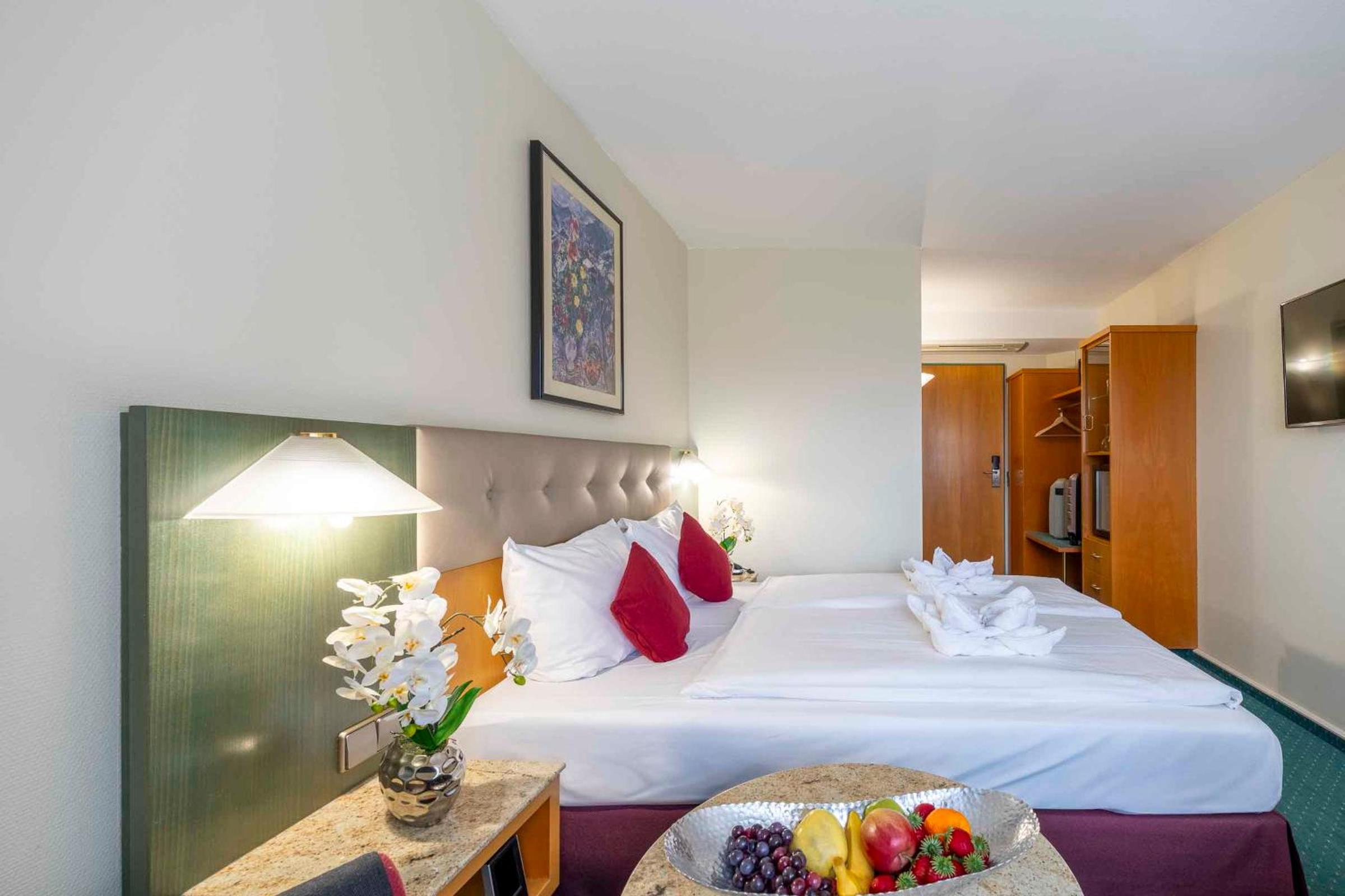 Indulge in mouthwatering regional dishes at the hotel's Ambiente restaurant, and unwind with a selection of draught beers and wine at the hotel bar each evening.