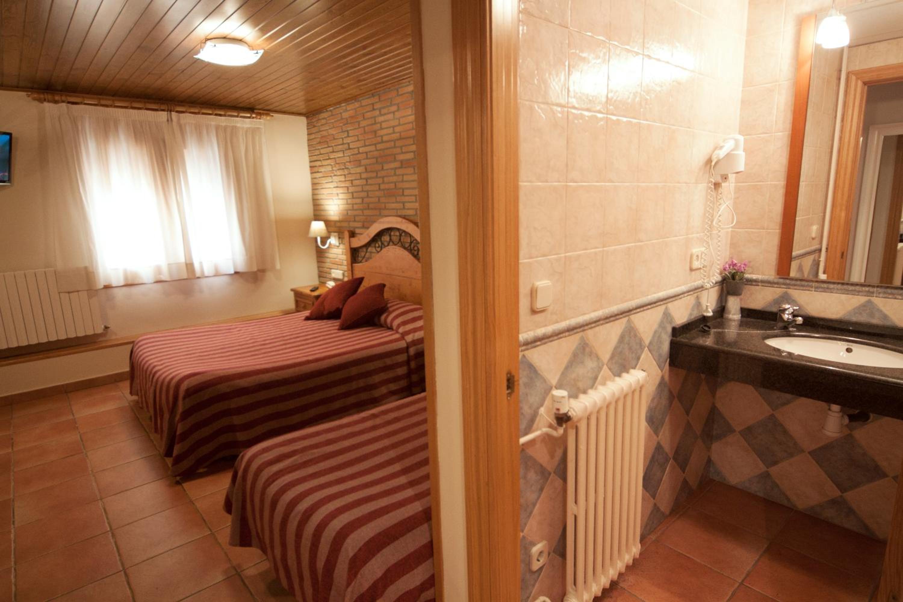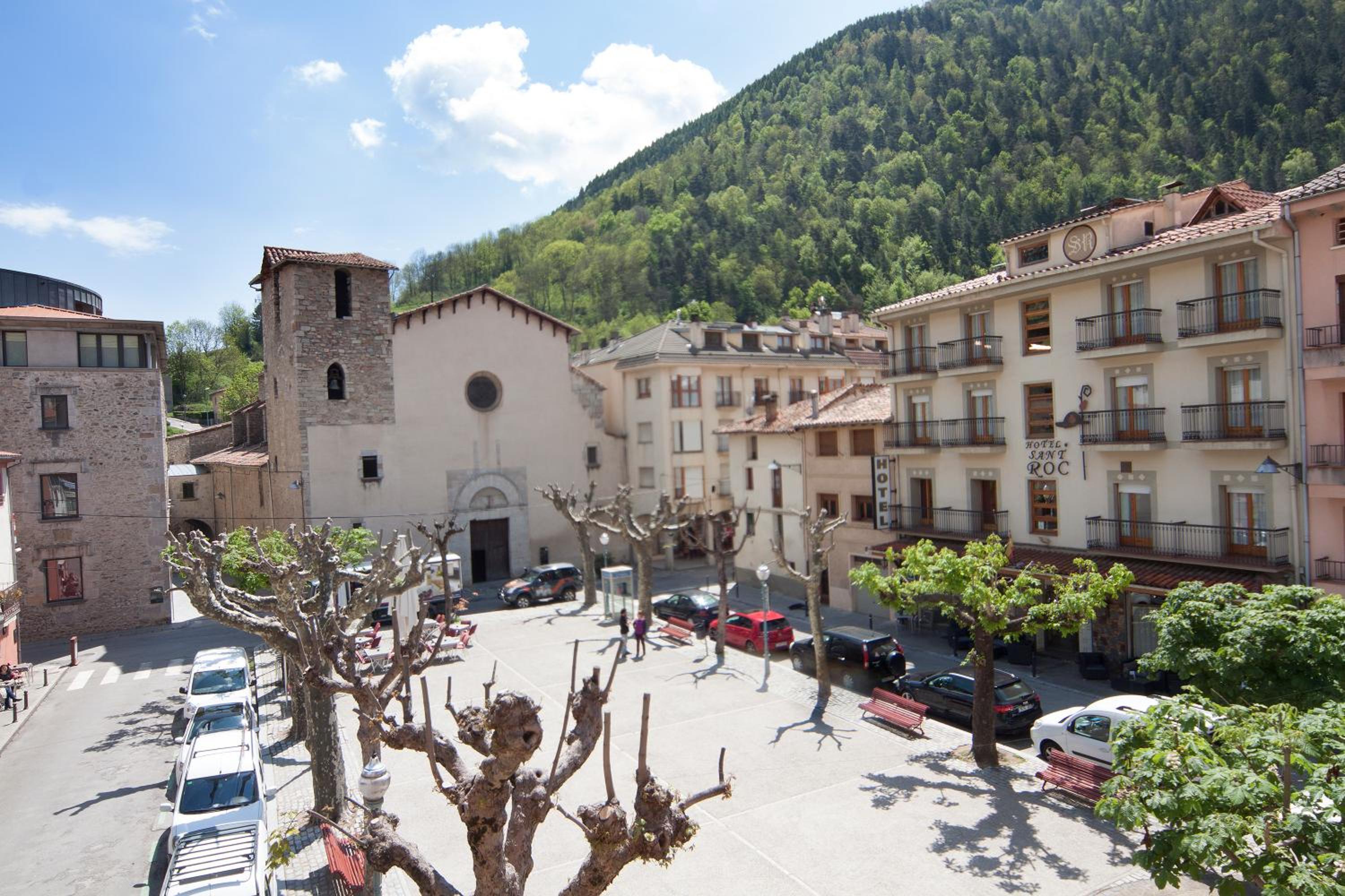Hotel Sant Roc, nestled in a quiet square in Camprodon, offers cozy rustic-style rooms with wooden ceilings and modern amenities. Indulge in the flavors of the region at the on-site restaurant, serving traditional dishes made with local ingredients like mushrooms and cured meats.