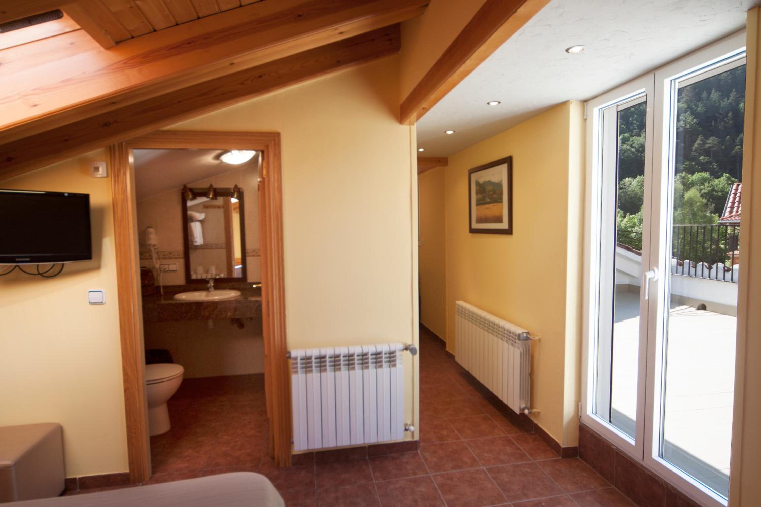 La puerta del baño tenía un tope,tropieza con el wc y se abre a medias. Las toallas,agujereada y gastadas,abría ventana y tenía una pared,el termostato no funcionaba, me dicen que estaban limpiando y que podría poner la temperatura que quisiera, no es cierto,siguió sin funcionar y la temperatura no se podía cambiar.