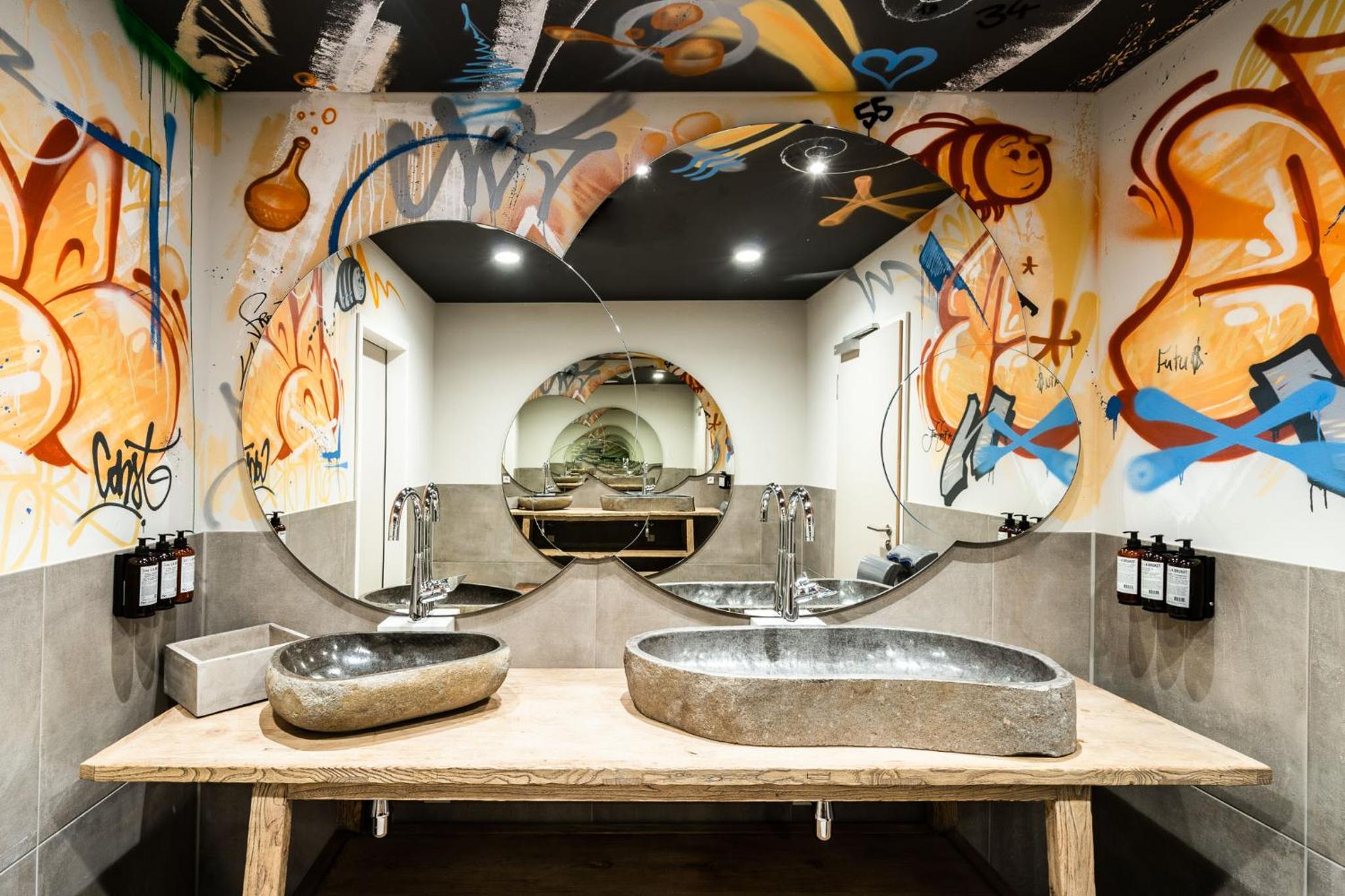 Es gibt einen einzigen kleinen Makel: die Toilettentüren sind Glasschiebetüren die unter keinen Umständen schalldicht sind. Es gibt keinen einzigen mir bekannten Grund beim Toilettengang auf Privatsphäre zu verzichten. So verliebt kann kein Mensch sein.