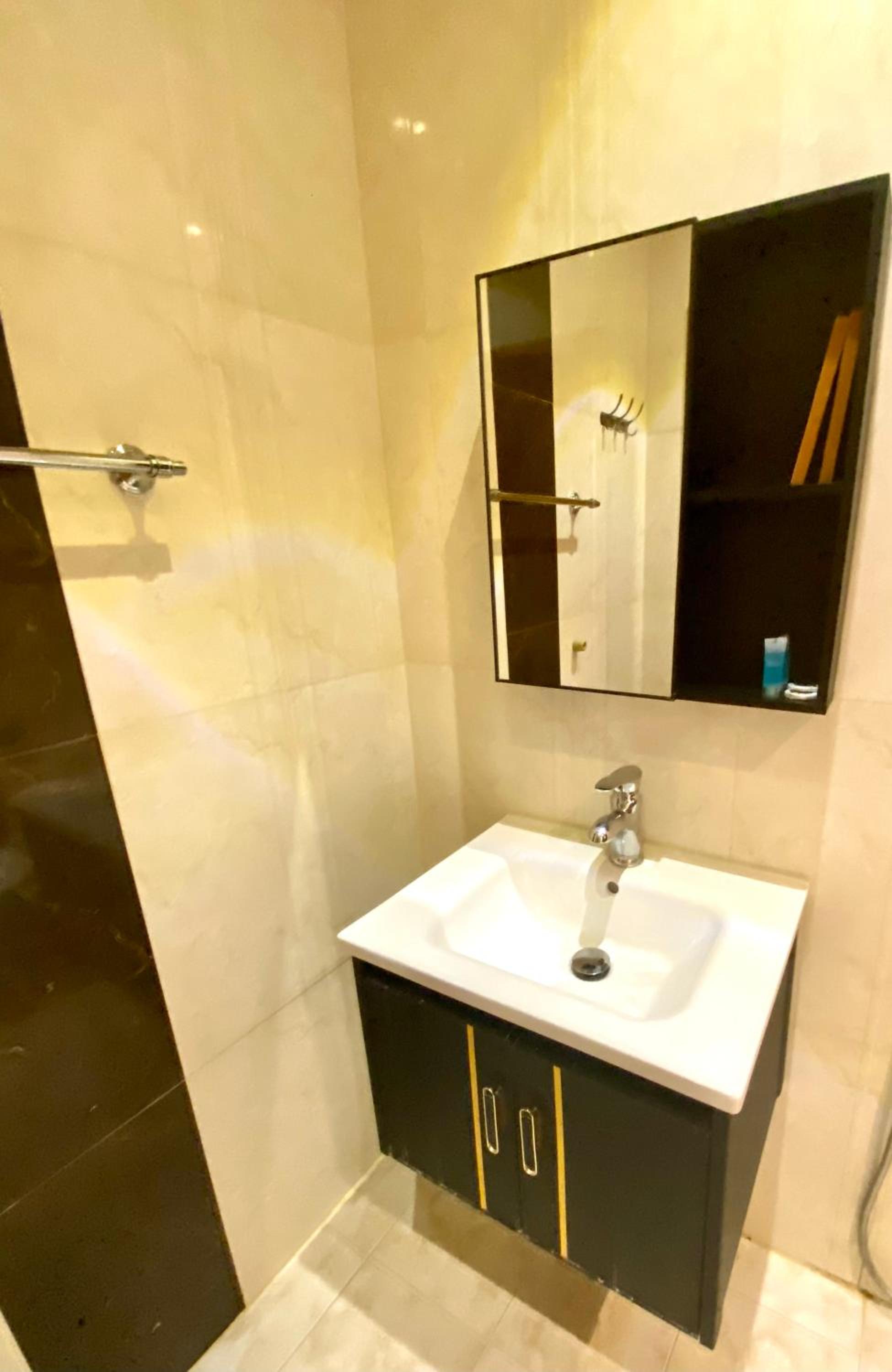 استأجرت غرفة ودورة مياة واكتشفت أنها قسم من شقة أكبر وتهوية دورة المياه على الجبس العلوي للشقة يعني رائحة الحمام حاضرة معك في الشقة وكذلك ميول بلاط الحمام باتجاه الباب وليس باتجاه فتحة التصريف يعني تتروش تحصل ماء الاغتسال ينتظرك على مخرج الحمام.. لا أنصح بالاستئجار فيها.