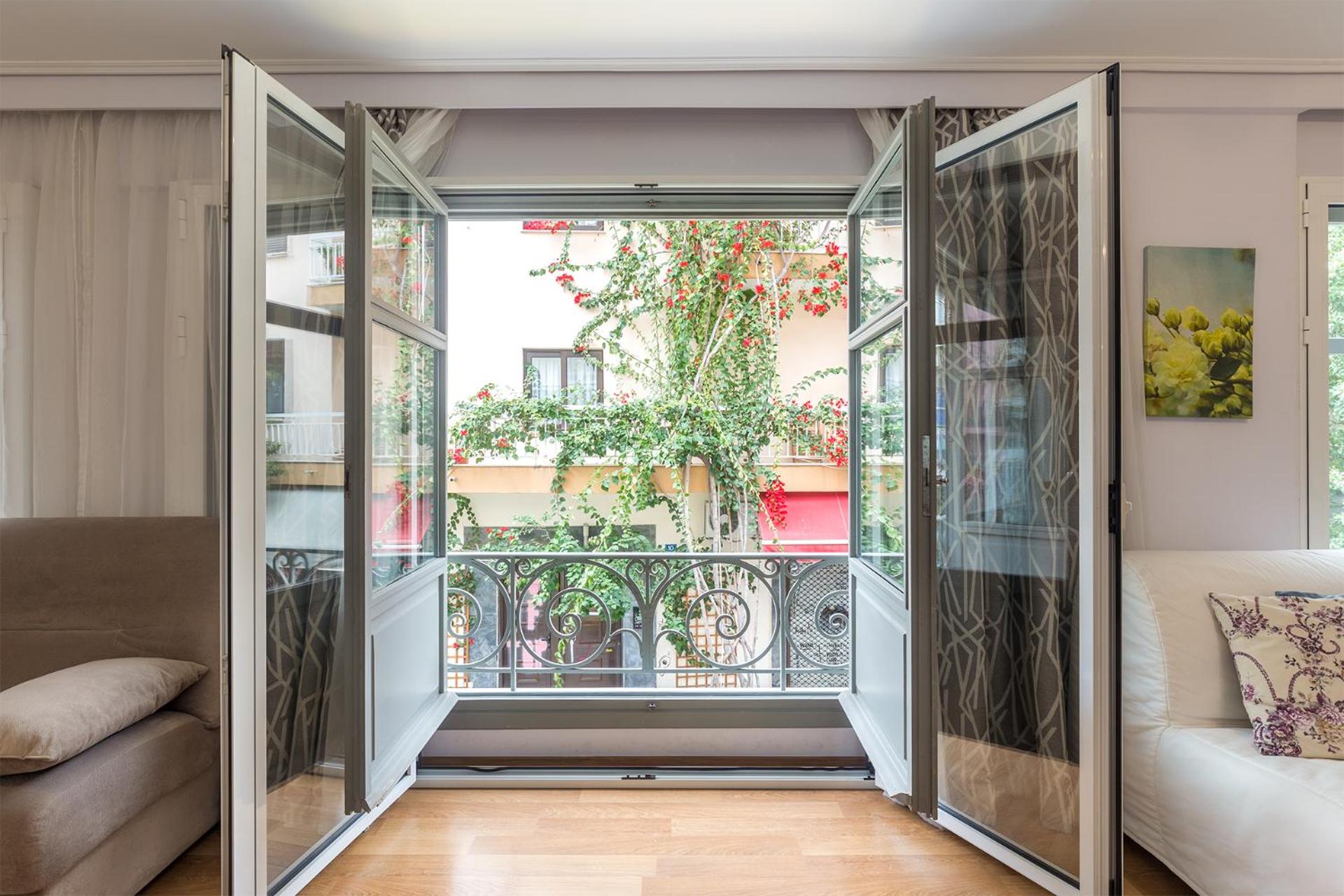 Central location,modern and had all you need except for some chairs for the balcony.Very well positioned and close to all the important spots, so you could access them by foot. They clean the apartment every day which is nice.Even if it is small,you have an elevator which is really usefull. Maybe they can improve the lighting of the apartment as it seemed a little dark if you close the blinds of the windows.