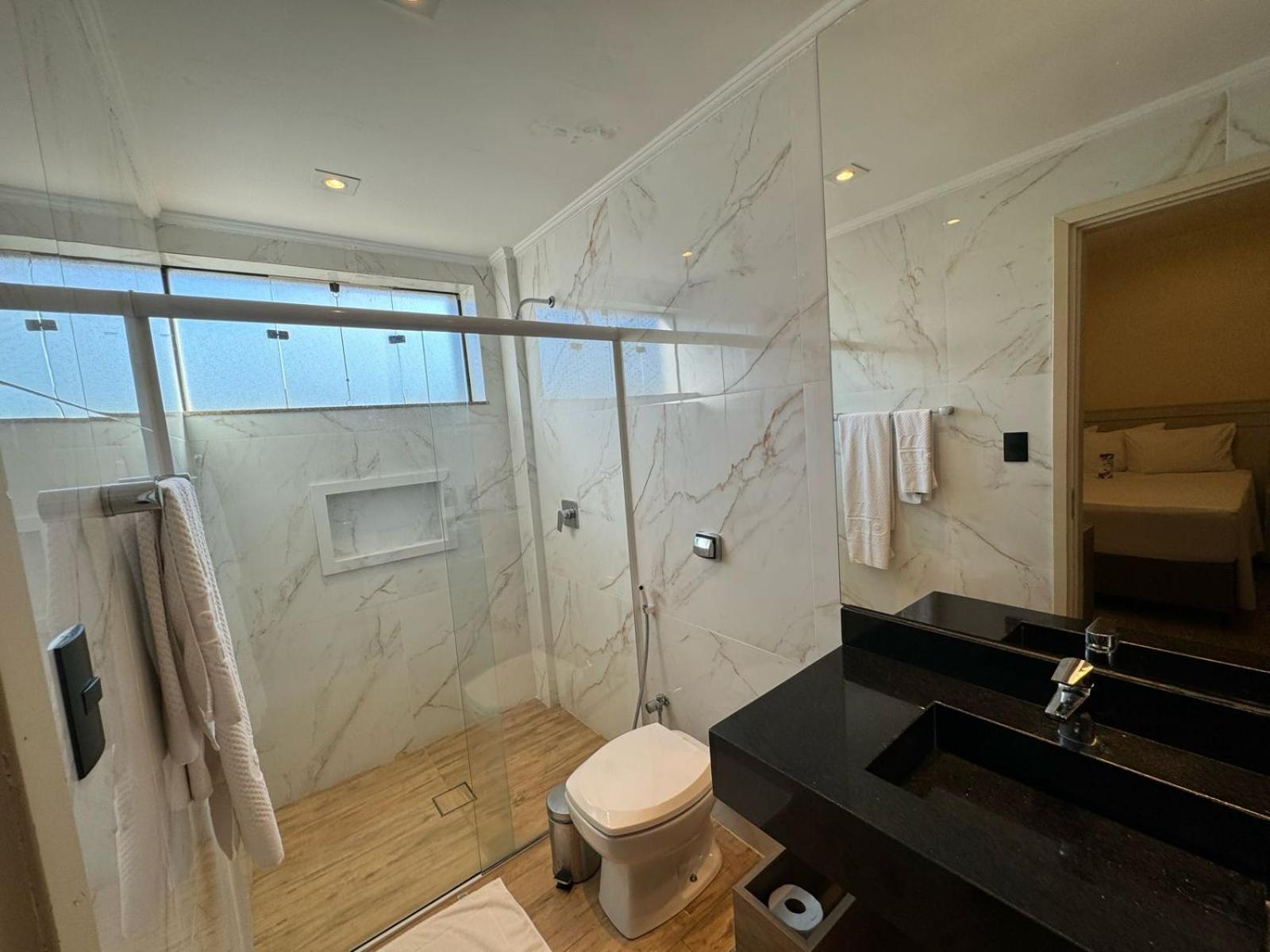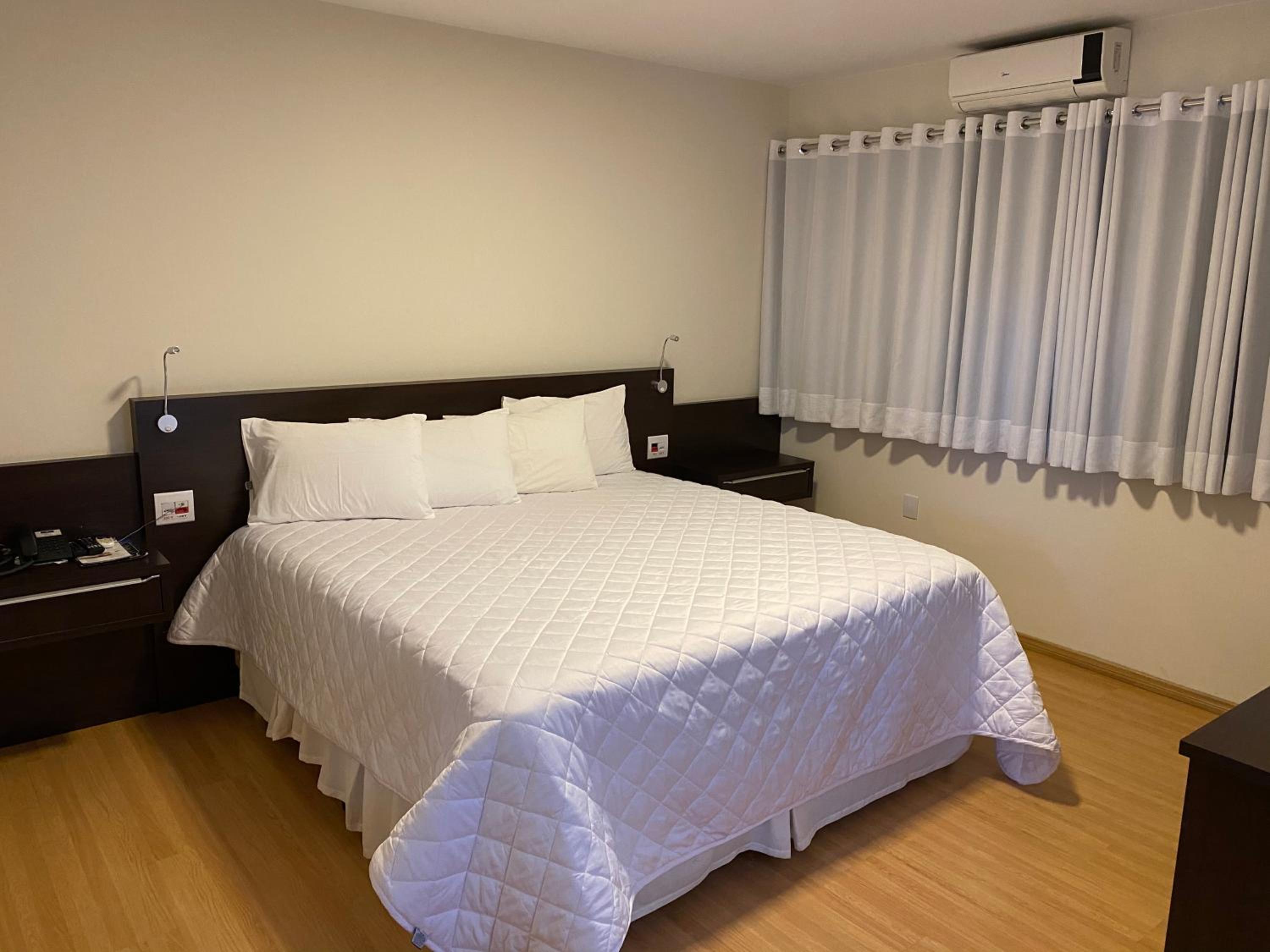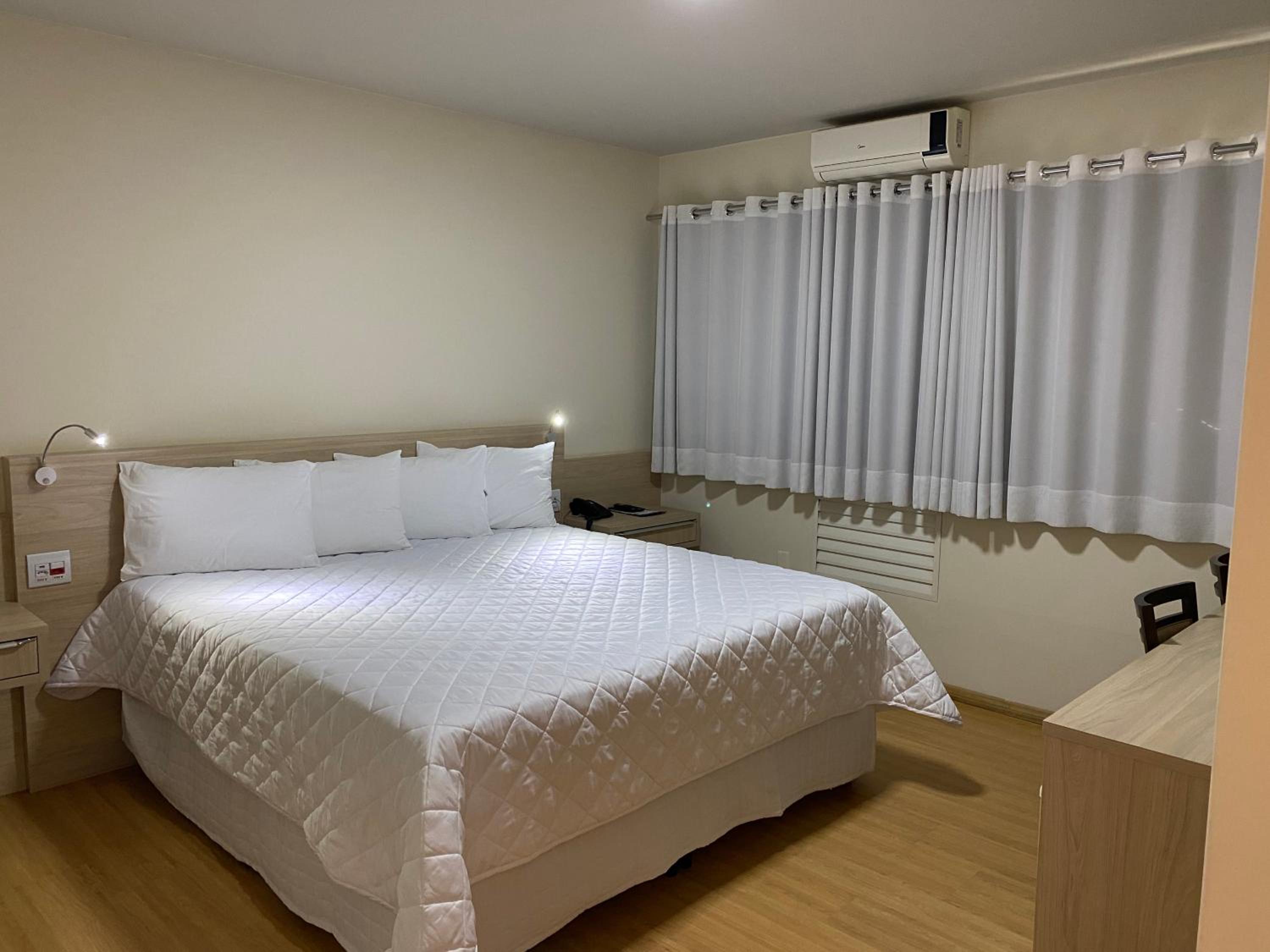 O quarto tem ótimo tamanho e a cama bastante confortável. Banheiro espaçoso. Usei a sauna a vapor e a piscina e estavam de acordo para o hotel. Excelente comodidade é o restaurante "Prazeres 22" no térreo, com bons preços e boa comida. O wifi funcionou perfeitamente.
