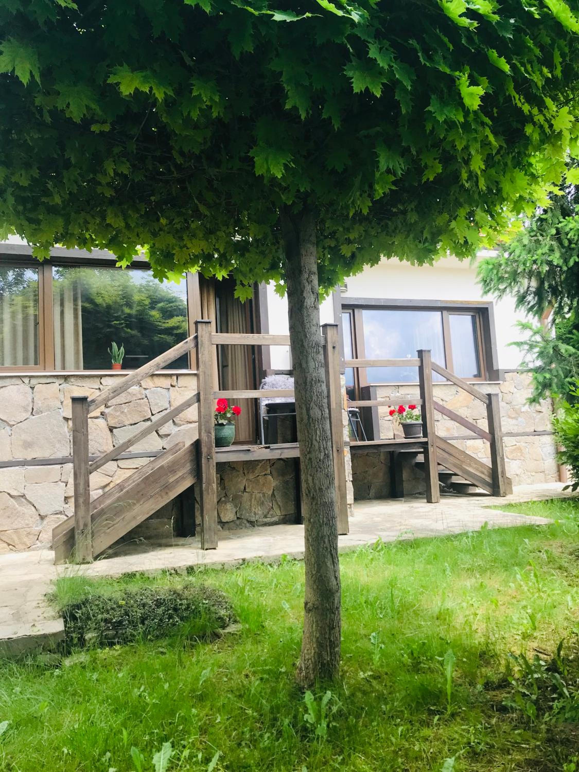 Прекрасна гледка на планините, уютни стаи и хубава тераска навън. Много красива заобикащя природа.