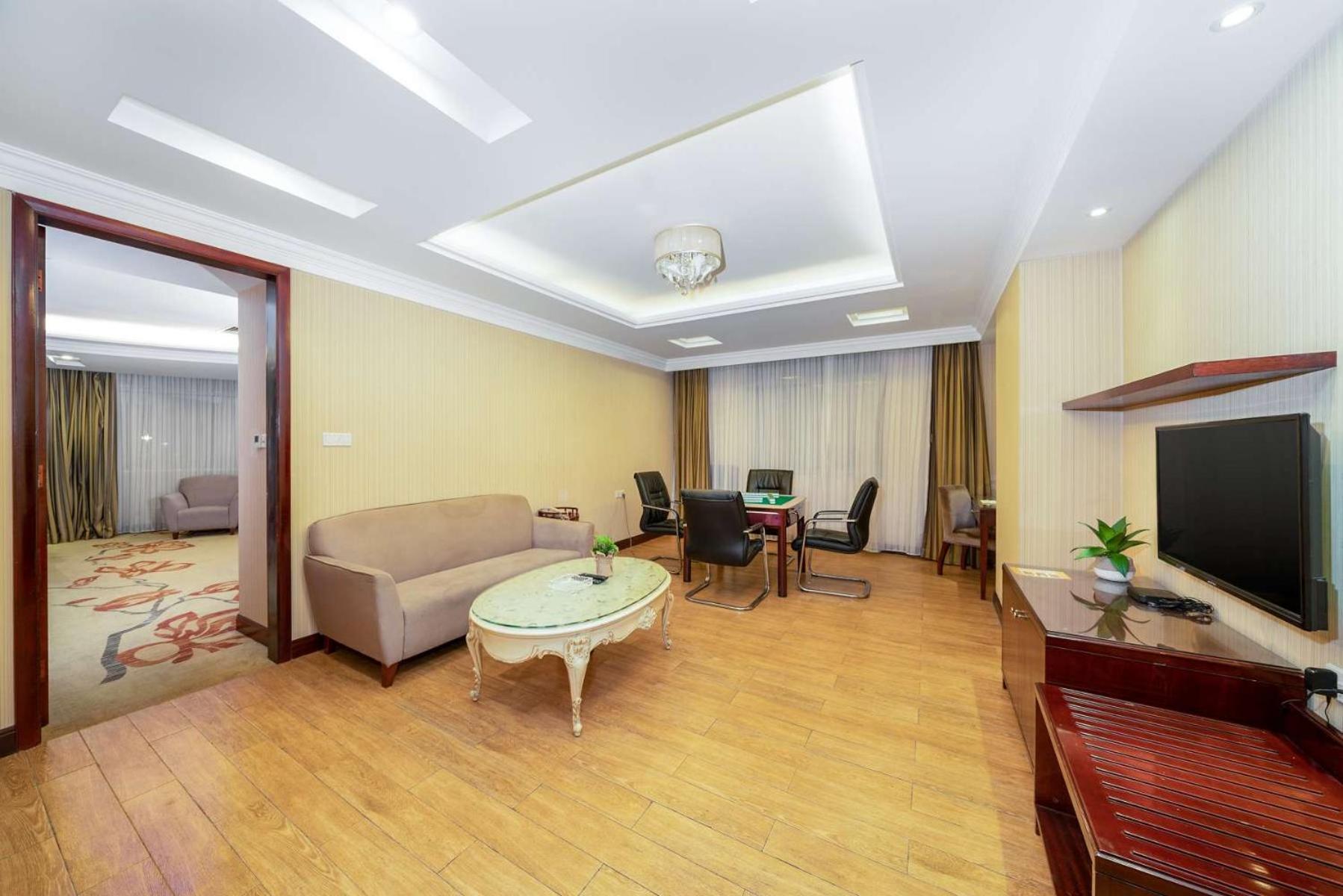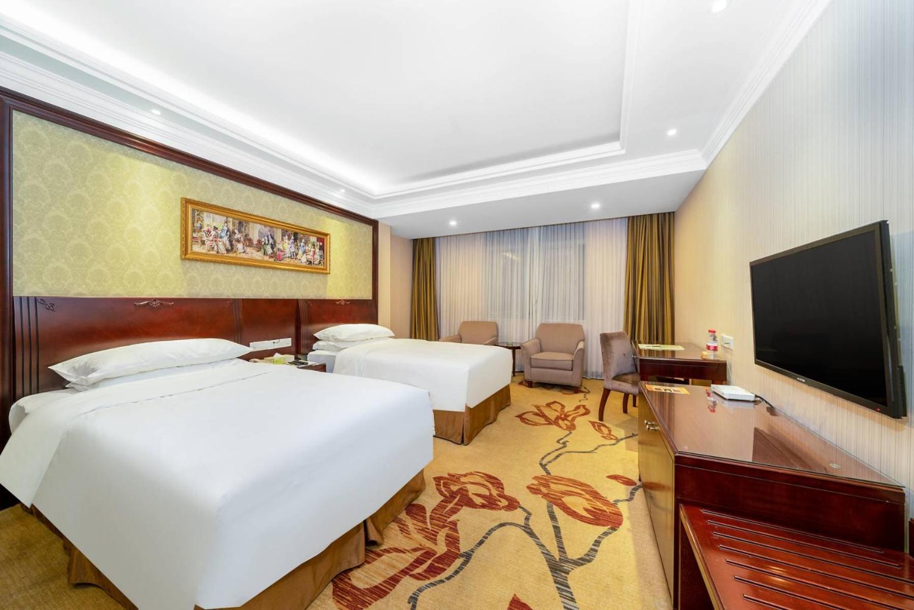 Vienna Hotel Dongguan Houjie Exhibition Center provides elegant rooms with modern amenities including a TV and a private bathroom.