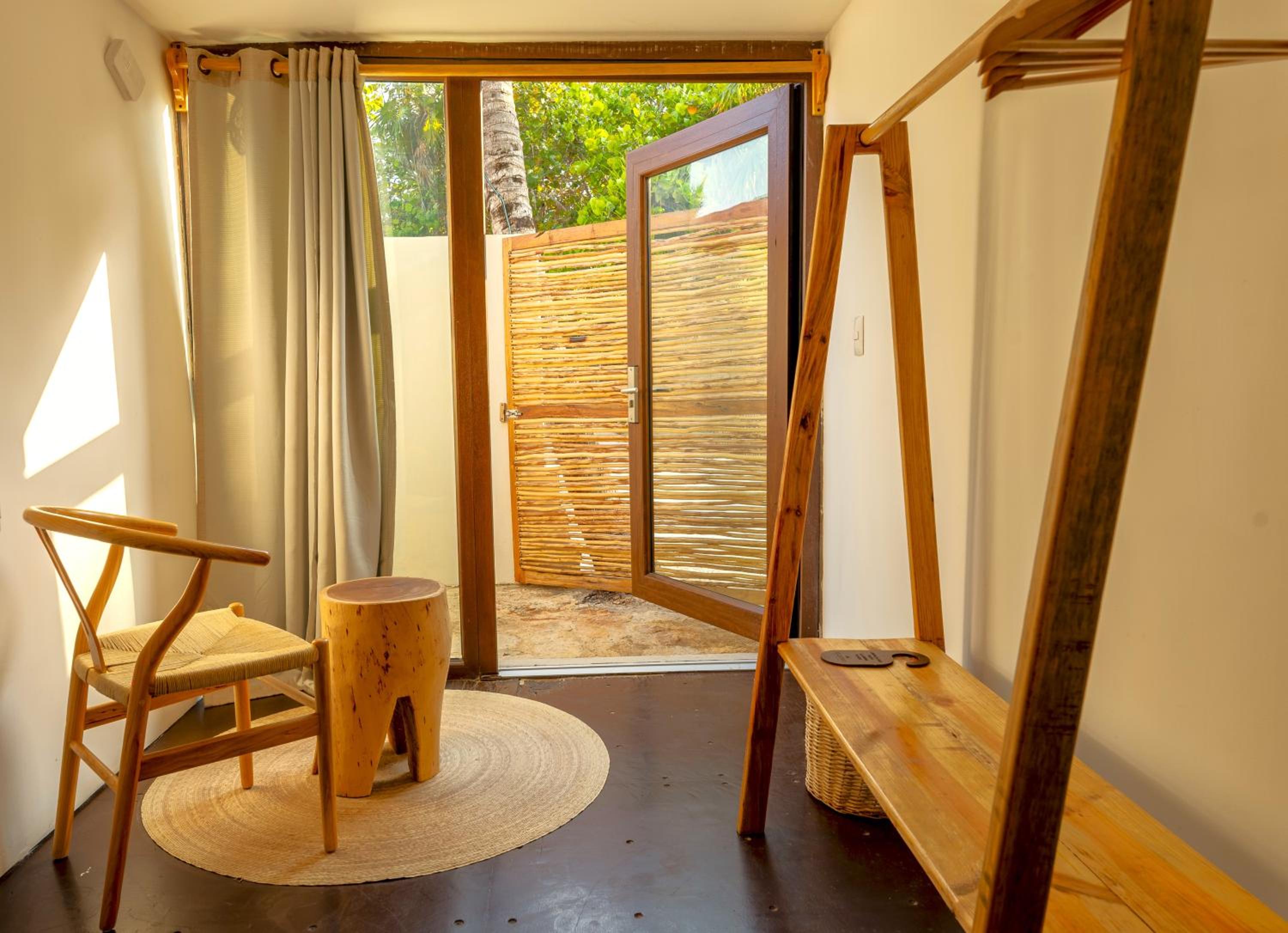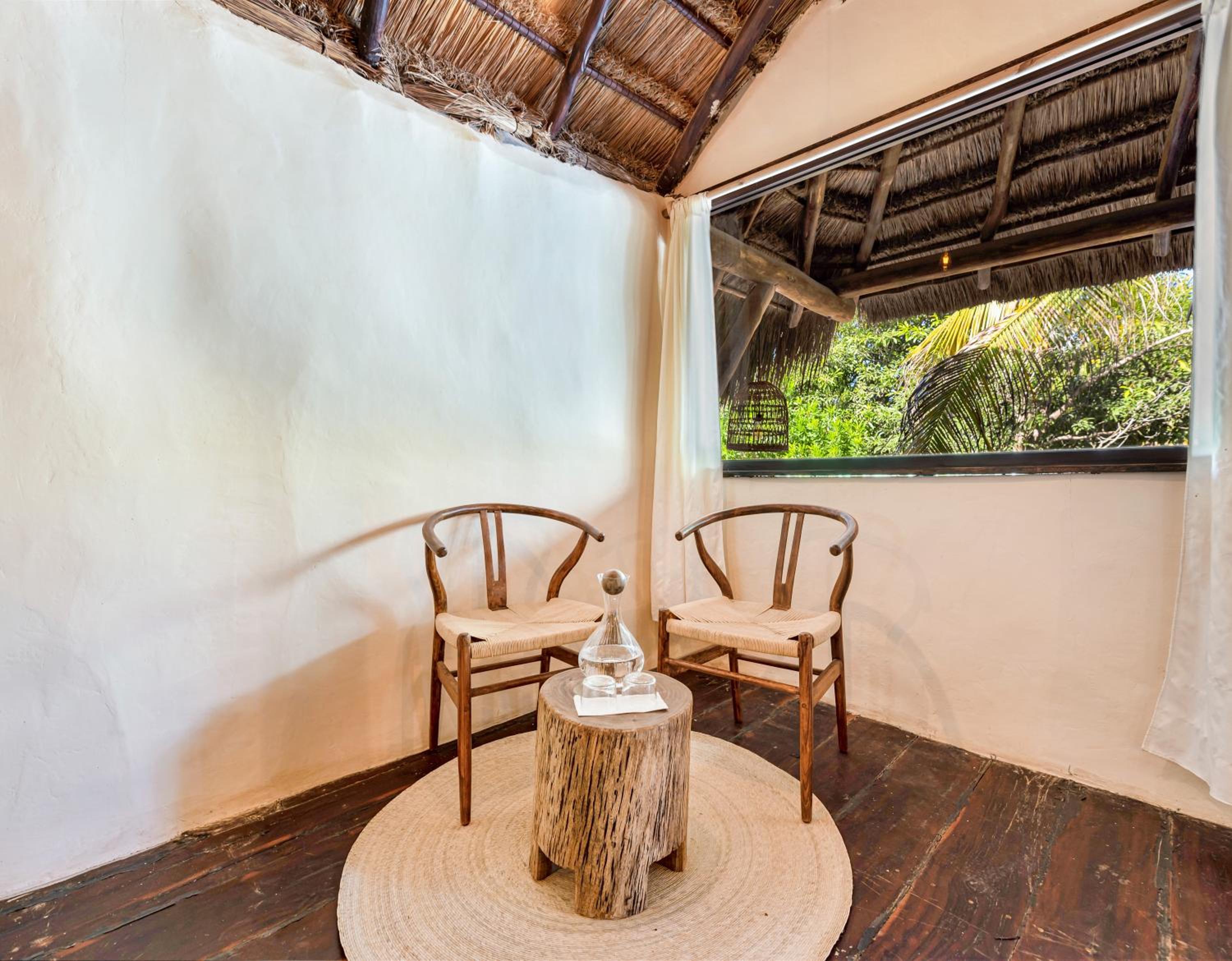 Experience the mesmerizing vistas of the Caribbean Sea from our cozy beach cabanas, each uniquely designed with our signature Eco-Chic decor, embodying the essence of Tulum.