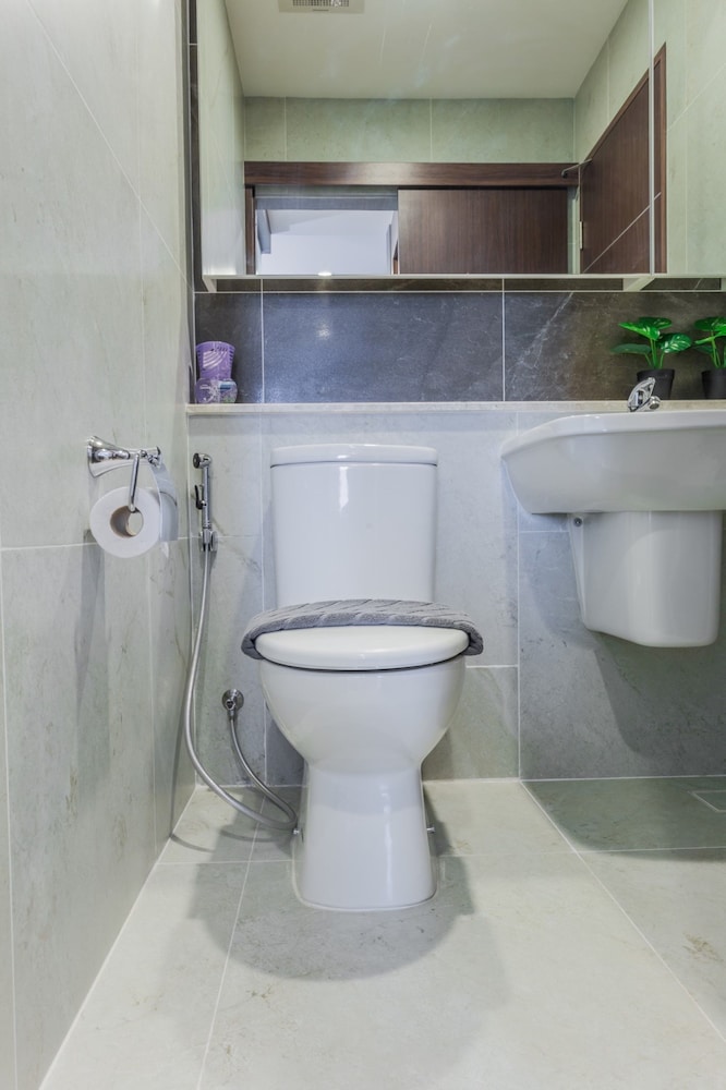 Great location. Adequate space with separate bedroom and washer dryer combo. Rooftop pool and gym were also great. Condo could include more.towels. We only had 2 bathtowels but no hand towels for bathroom.
