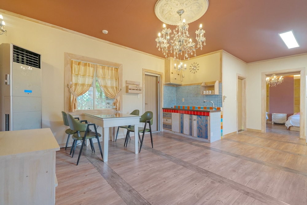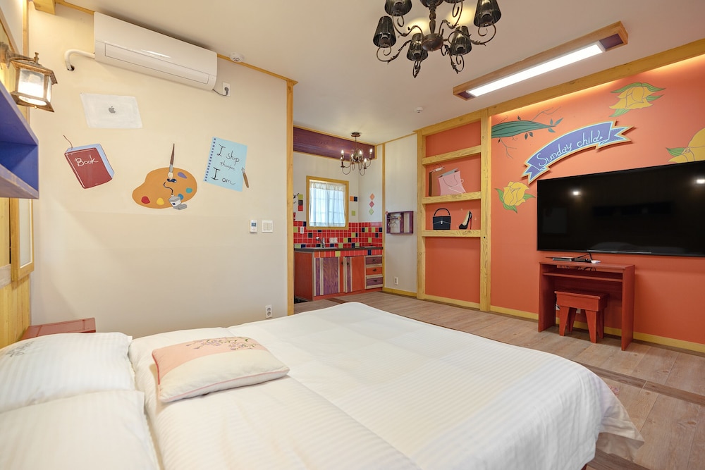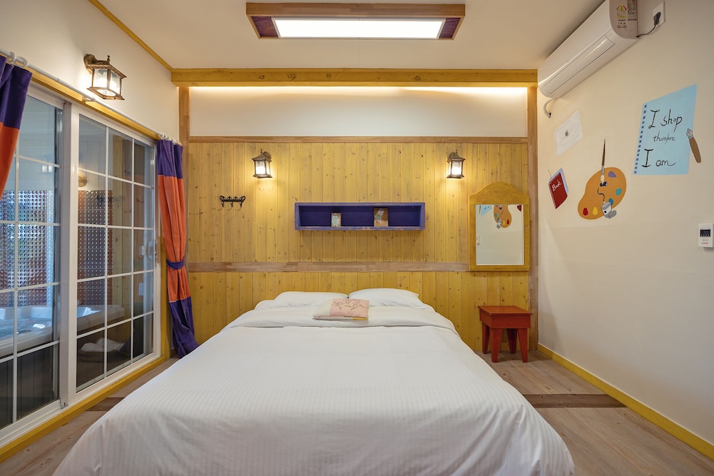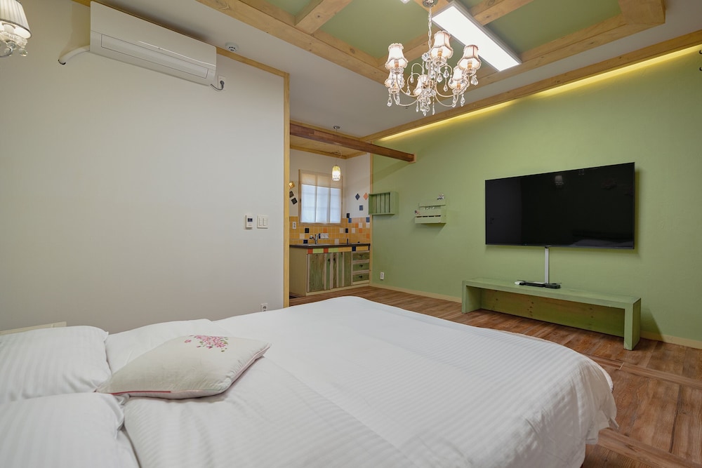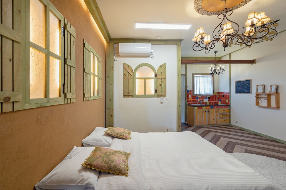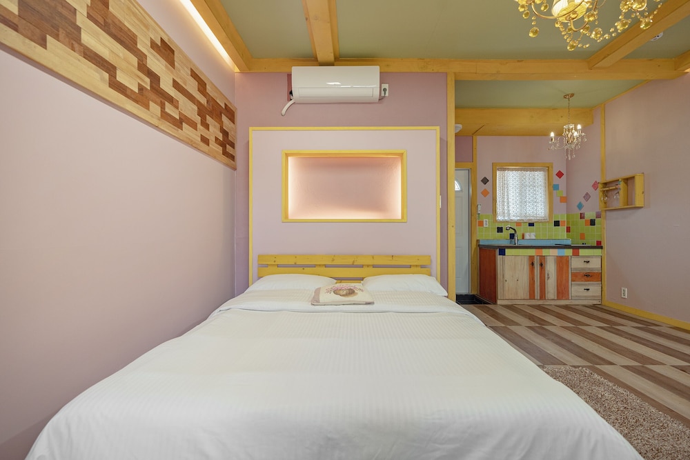 Room was really nice with an outdoor bbq. Owners are very friendly but don’t speak any English which was alright. Be aware that you are well and truly out of the city centre but owners are more than willing to bring you to the bus stop. And be prepared to listen to a continuing loop of korean pop songs. Although if you have your door closed you barely hear the music. And i’s a self catering place