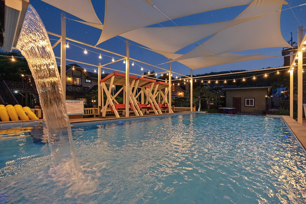 두사람이 지내기에 실내 공간이 넓었고요 청결하고 편안했습니다. 사용은 못해봤지만 수영장 물이 너무 맑게 보였고 주위 경관도 좋았습니다.