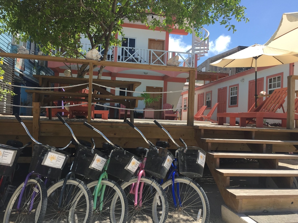 Nothing fancy, just a nice, really clean little private rooms around a small courtyard and small pool, in a little Mom and Pop hotel. Its really an excellent location near the fishing charter boats, along the Bay side and you can walk to everything including the airport in under 5 minutes. Ocean front rooms in this town are extremely over rated and expensive trust me on this, even if you don't mind smelling seaweed. Not a problem here and you still have plenty of breeze, especially on the second floor rooms. The owner is on site, a wonderful and very interesting fellow if you engage him, i found him quite pleasant and humble. Turns out they have an excellent breakfast and lunch restaurant right on property. I should have just had breakfast there every day honestly, but I wanted to try a few places. There's several excellent dining choices within 5 minutes walking distance. Fishing and diving snorkeling, all within 5 minutes walking, no cart needed but the bicycles with basket provided by the hotel were greatly appreciated for my longer excursions. Large grocery store is one block away also. The AC worked great, as did the mini fridge. No TVs and that's fine with me. An ice machine at the hotel was not found but i didn't ask. At this price point, i was actually extremely impressed, if you are hostel kinda travelers, pay the extra few bucks on this place and live it up some, if you want room service and HBO and your hair done not your place.