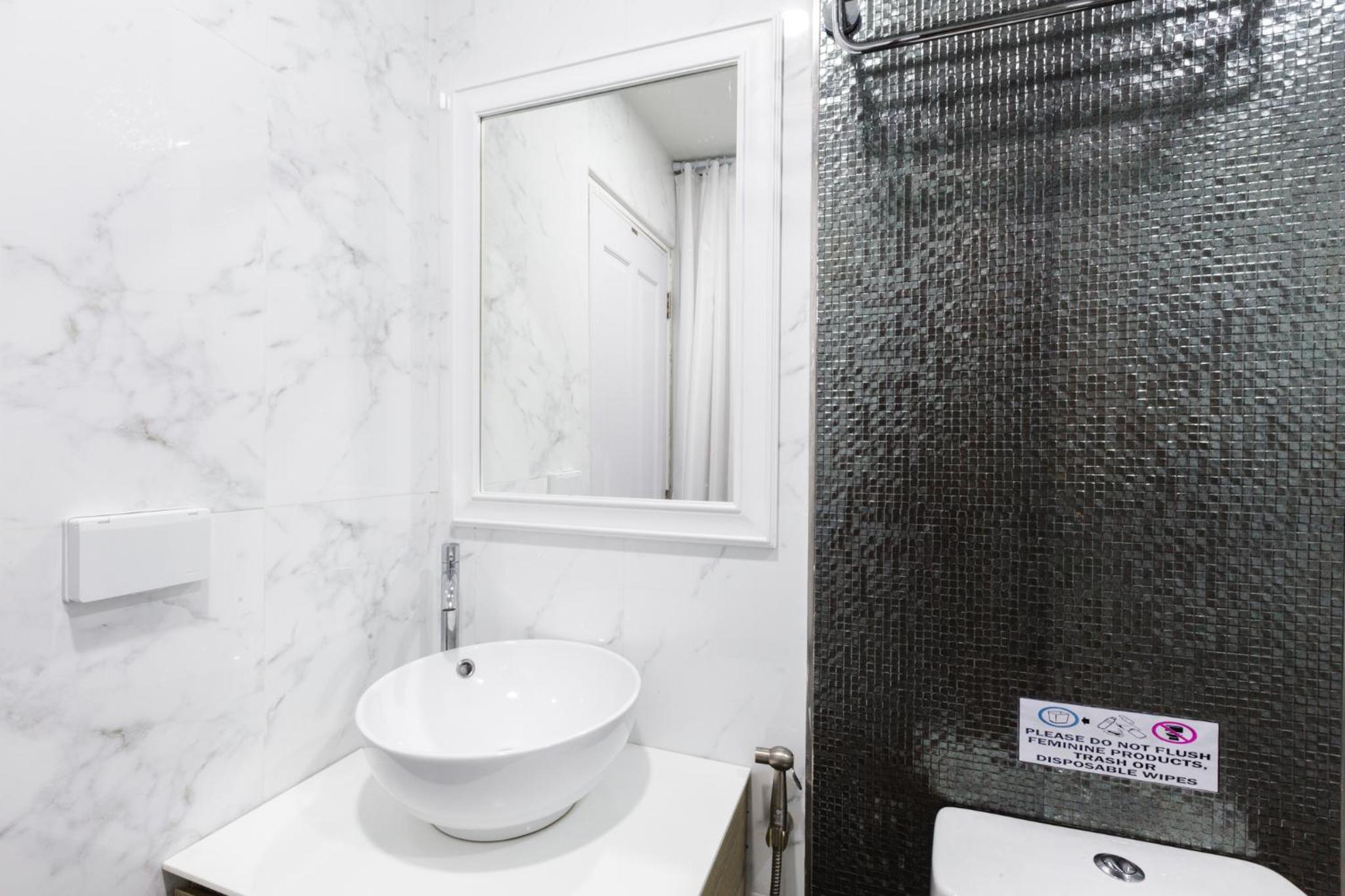 Guter Wasserdruck zum duschen. Gepäck Aufbewahrung. Sicher und ruhig.