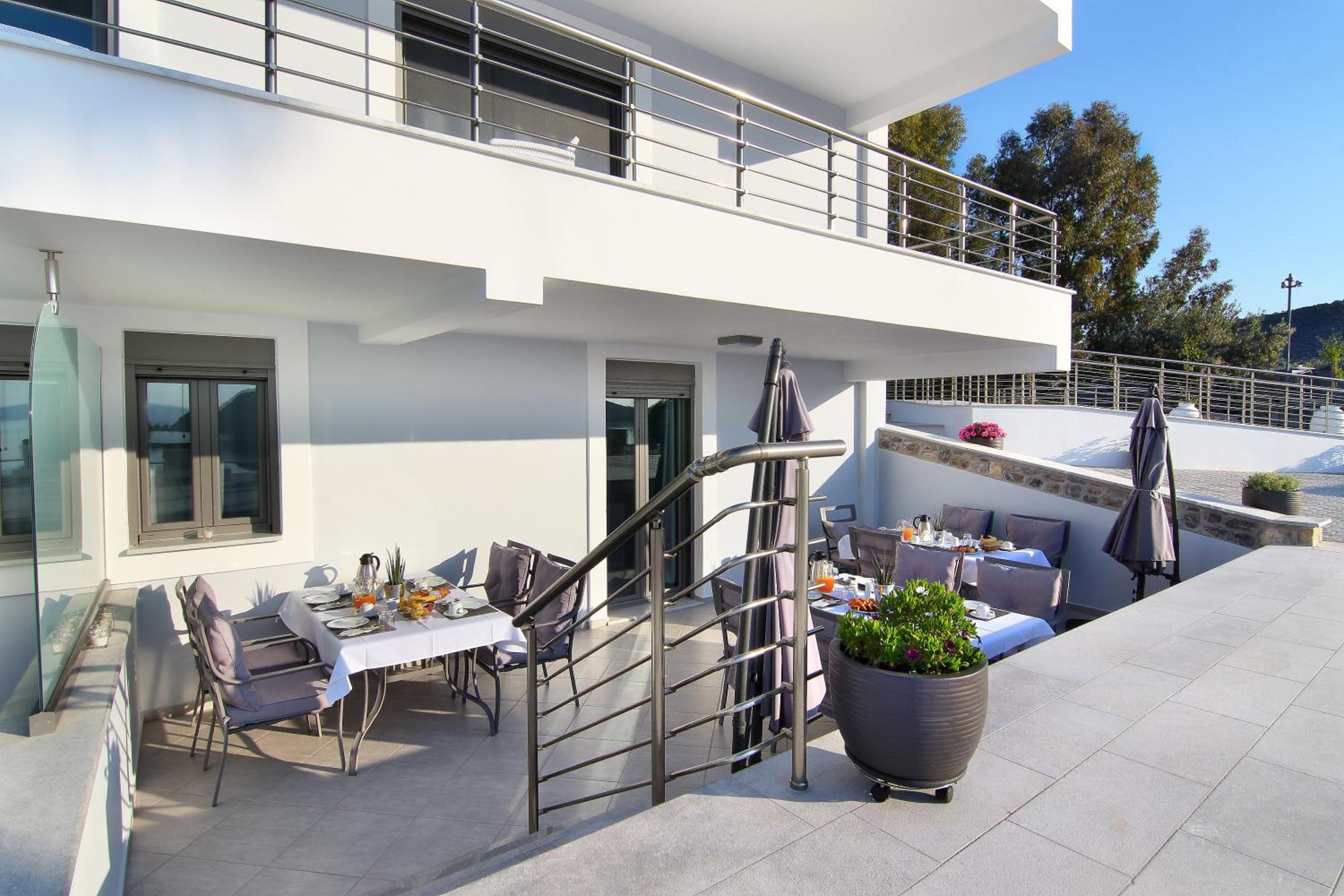 The villa is located away from the main tourist center, restaurants, bars, or tavernas, and does not offer any meals beyond breakfast.