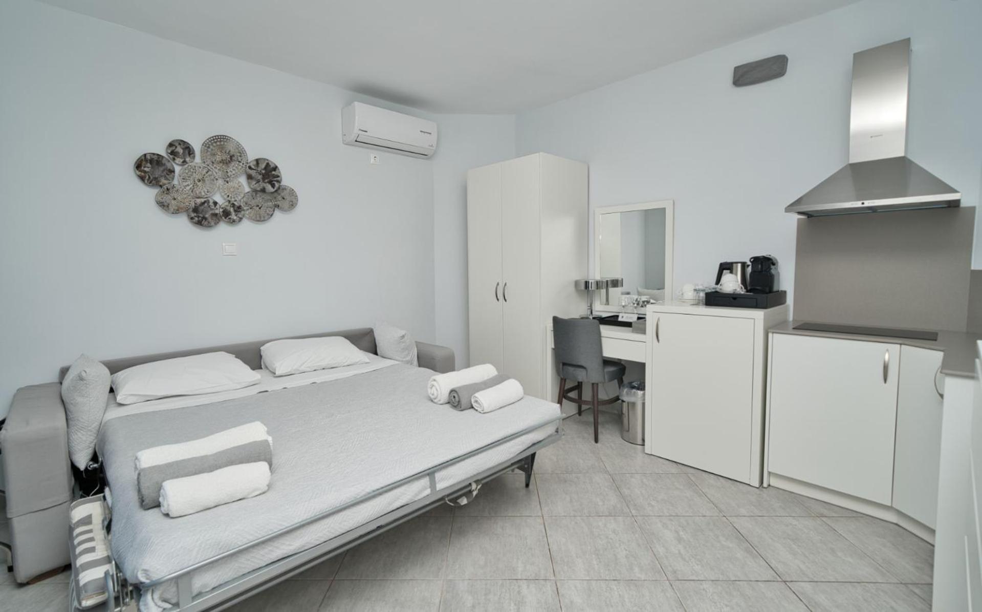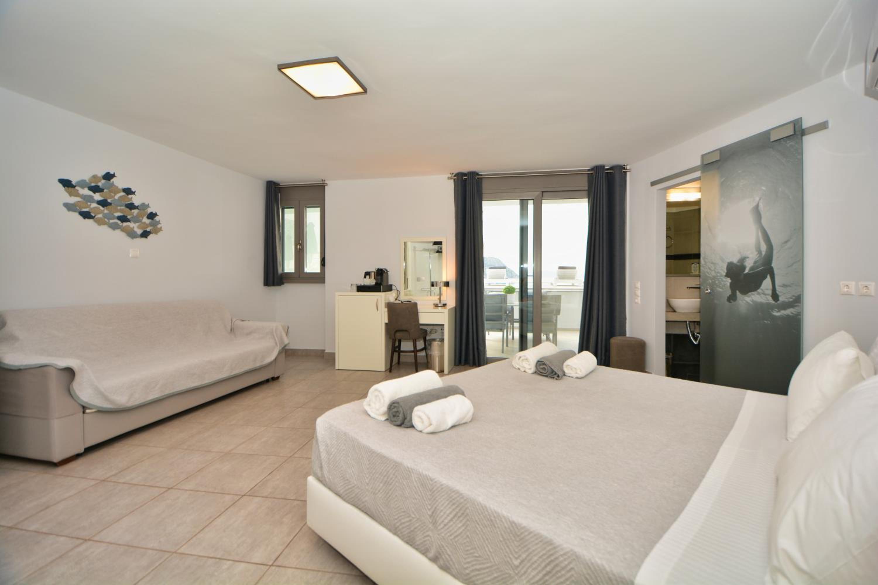 Such a beautiful property, straight access to the sea and with complimentary kayaks and stand up paddle boards. Everyone was so kind and caring within the staff and they made a real difference. Rooms were serviced impecably whilst out at breakfast. Korres bath products are local to Greece and of great quality. Moquitoe screens on each window which is superb. Our anniversary was recognized and special touches were made to make it feel special. Thank you!!!!