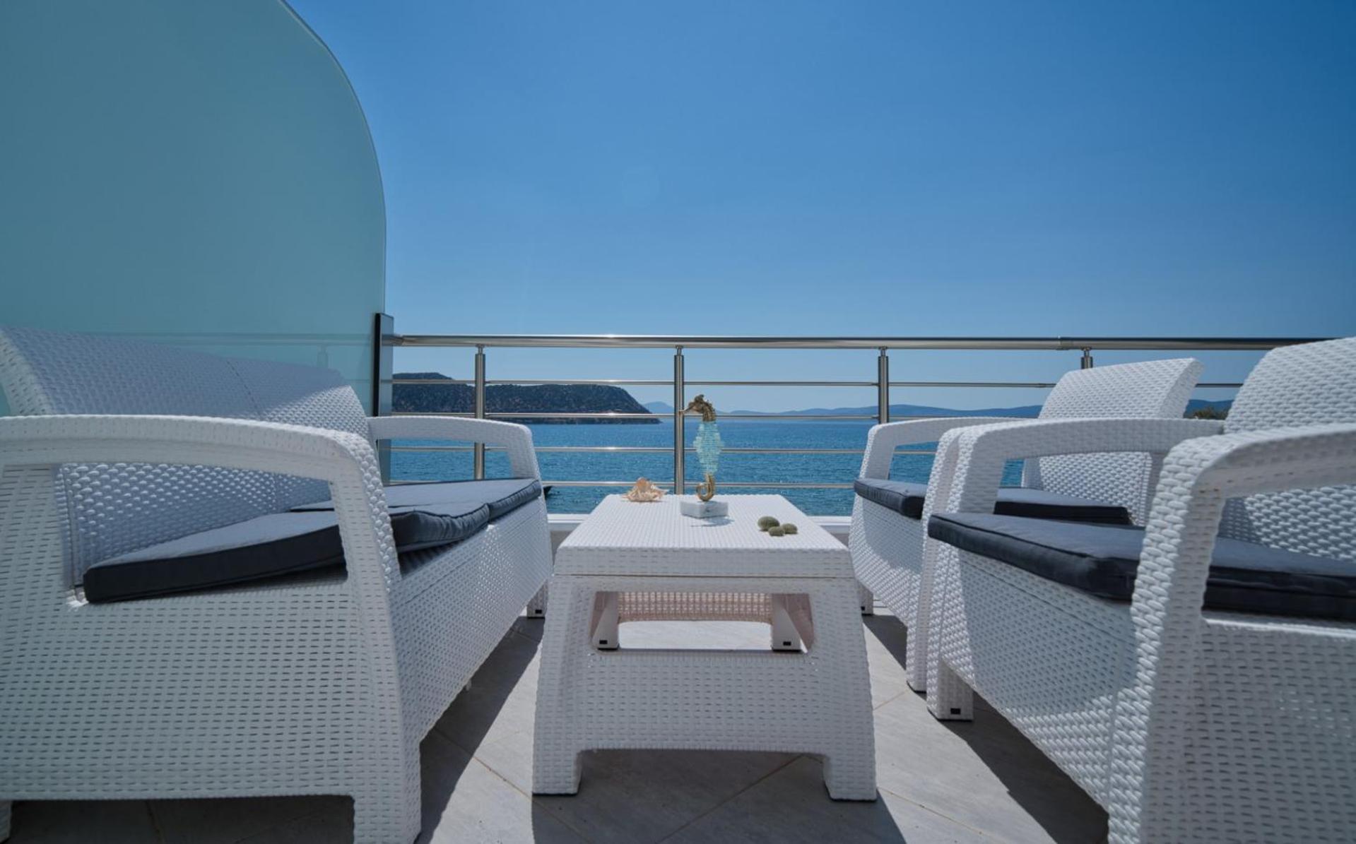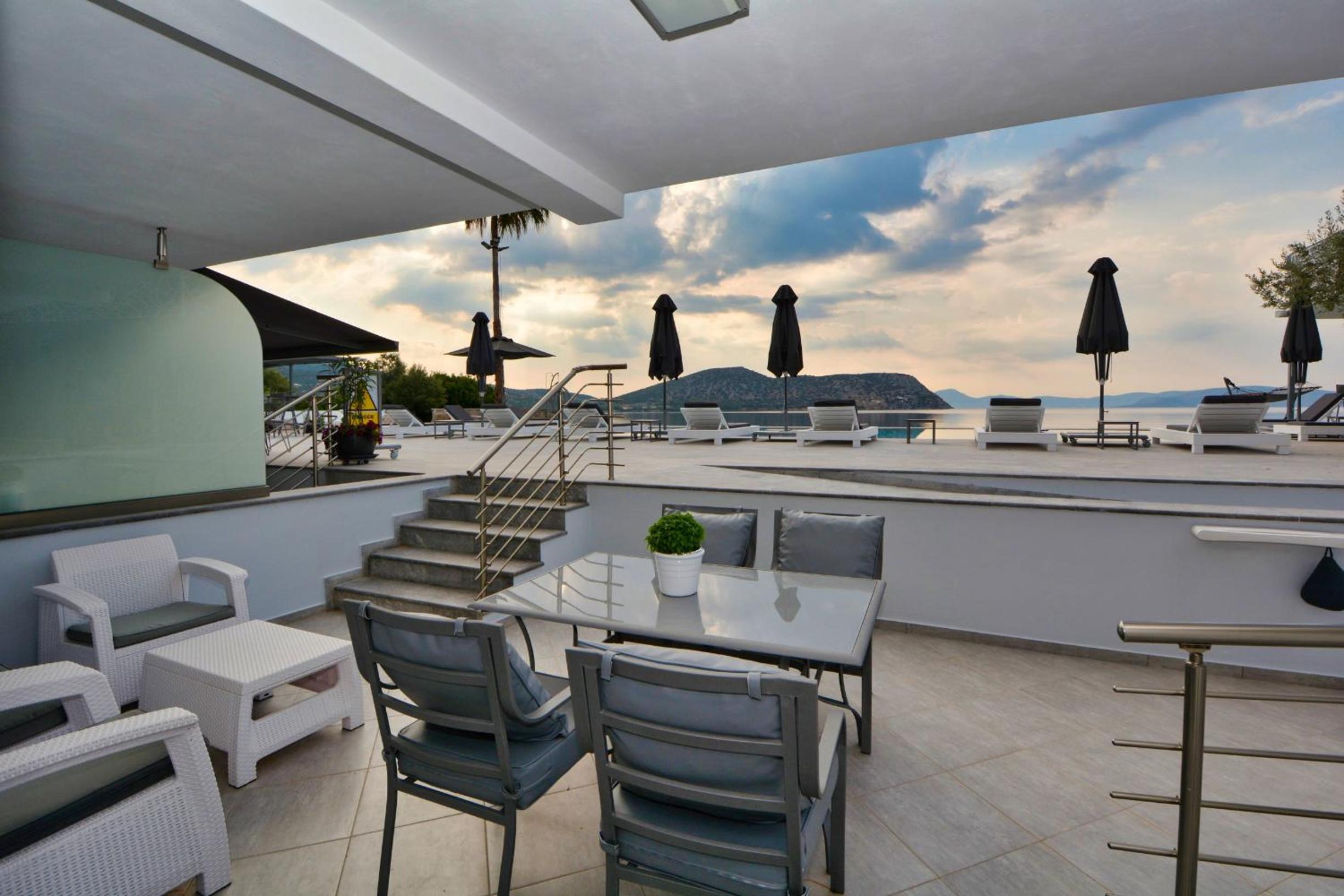מלון בוטיק קטן 5 חדרים סה"כ, על הים, חוף פרטי, בריכת אינפיניטי 15 מ מהחוף, הכל נקי ומסודר, צוות נפלא ומאוד שרותי, יש סאפ וקייקים לשירות האורחים.