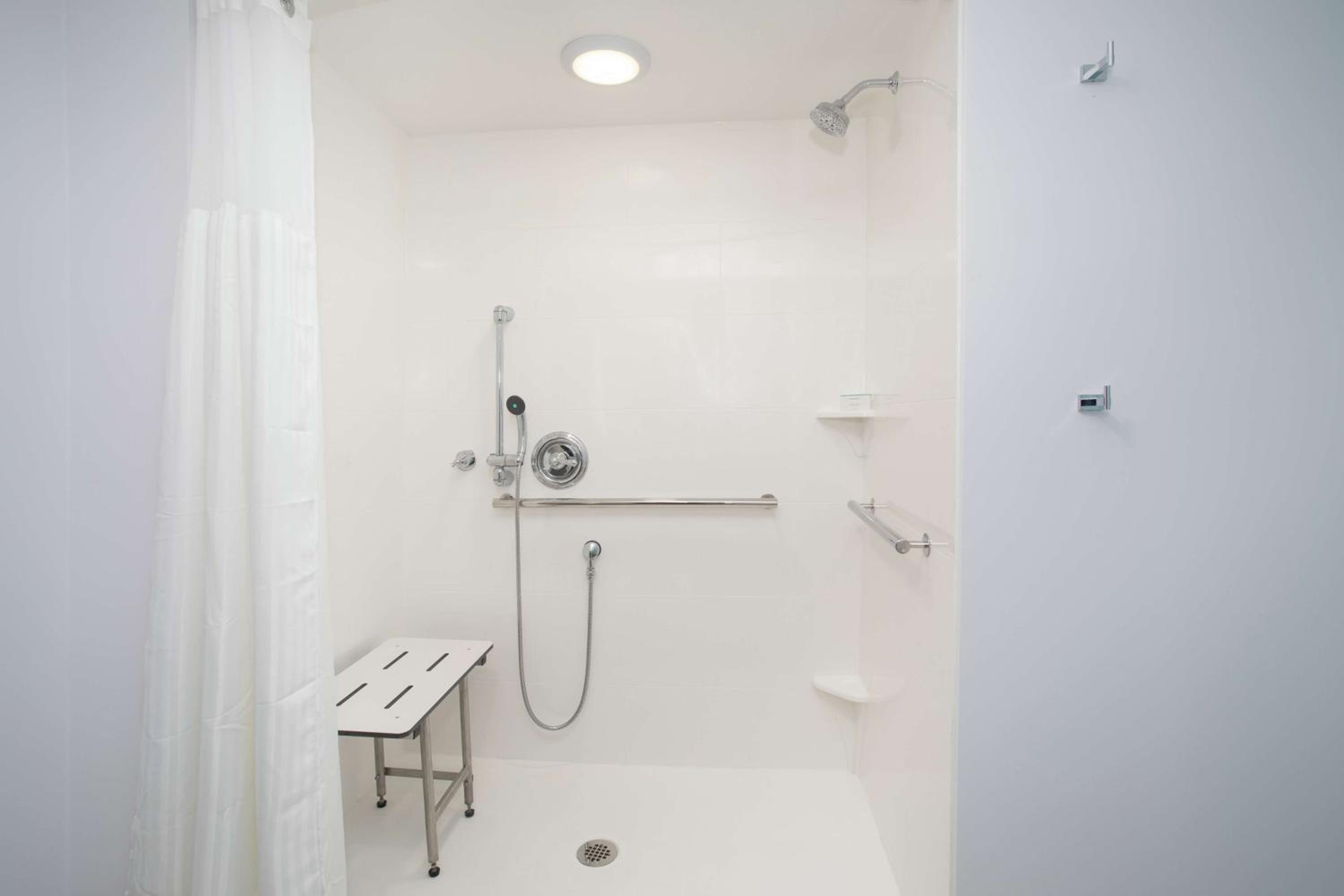 There was a bit of staining at the corners of the shower in the hard to clean areas. The rest of the room seemed very clean though.