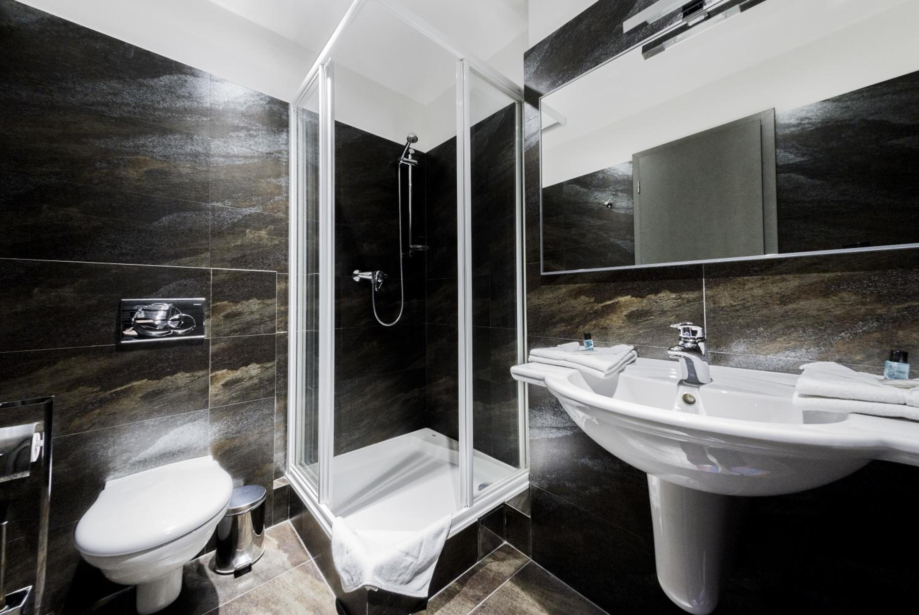Hotel w dobrej cenie z trzygwiazdkowym standardem - pokój mimo wszystko wygląda w miarę nowocześnie, czysto i przestronnie. Mieliśmy łazienkę z wanną, ale w łazience również była kabina prysznicowa. Szybkie dojście do metra, w pobliżu również przystanki autobusowe, więc da się dojechać w różne miejsca w miarę szybko. Do centrum jakieś 15-20 min. 3 minuty spacerem jest również market BILA. Dostępny parking, pobyt był przed świętami w grudniu, nie mieliśmy problemu z miejscem.
