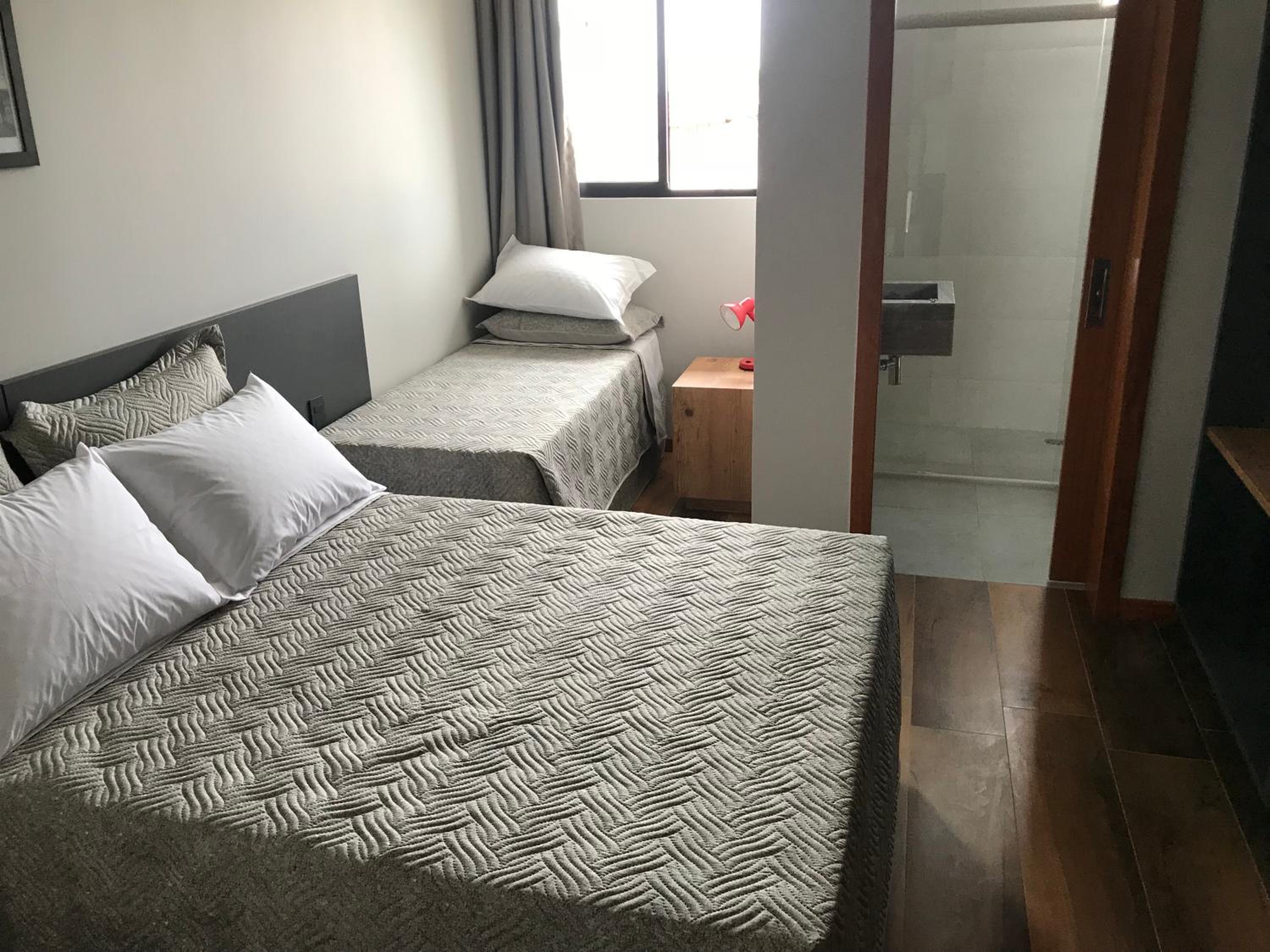 Poderia ter um shampoo no banheiro e a cama de casal do quarto não era de casal, eram duas camas de solteiro juntas