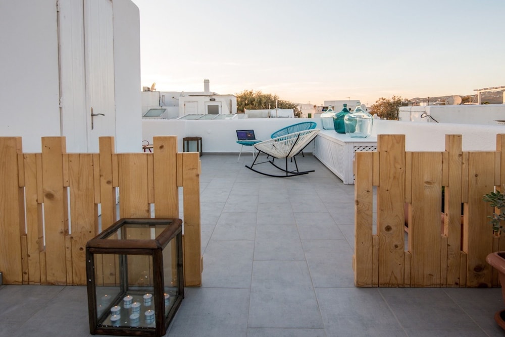 Unwind on our stunning terrace, where you can soak in the picturesque sights of Mykonos, creating unforgettable memories.