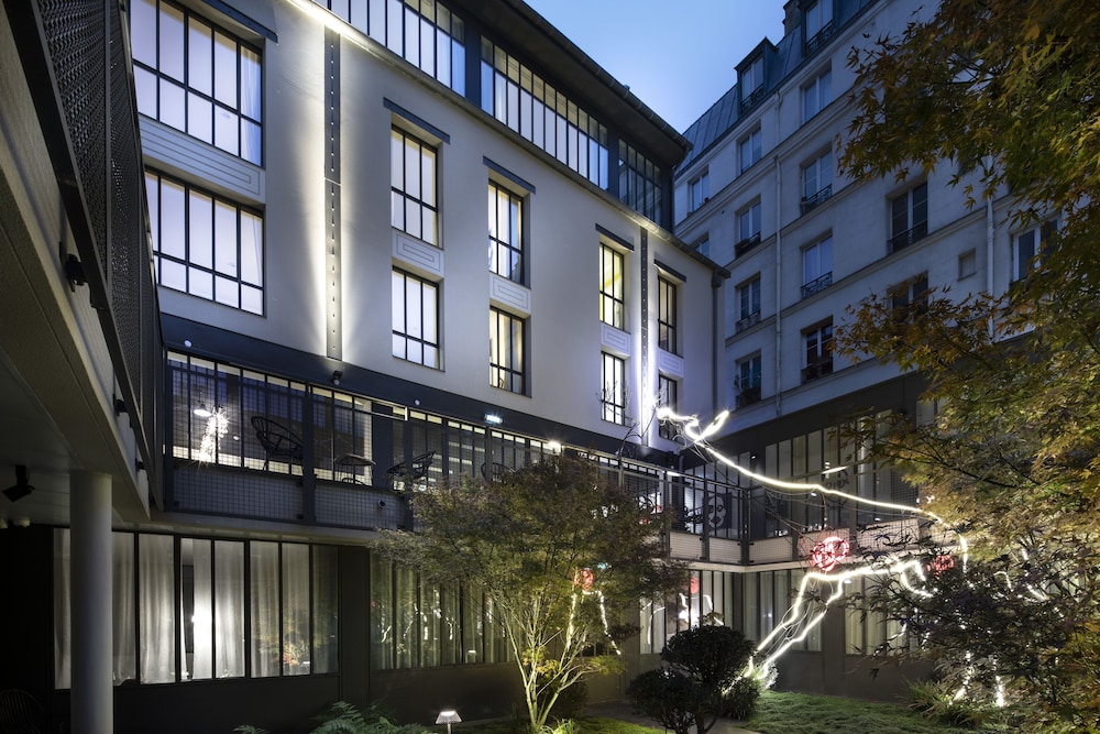 Superb hotel in the 11th district, very quiet street off Ave Parmentier. Owner and staff extremely welcoming. Attention to details in every aspect of our stay: hotel/room deco & amenities with beauty standing bath and top range Nespresso machine. Quiet outdoor sitting area surrounded by trees and the ‘giraffe’. Easy walkable distance to many restaurants, 20 min easy walk from place des Vosges and very lively Marais area, 30min from notre dame/gare de Lyon but also easy access to public transports both bus/metro. A little gem in Paris!