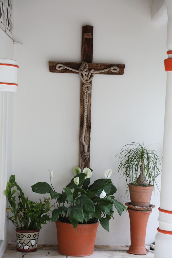 Caas Blanca del sol in Santa Cruz is a quaint, small hotel with just 6 rooms. Each room has their own sitting space and there is a small pool and lounging area. A shared communal kitchen is available and is very handy to have. We had the Dolphin room which was very spacious with lots of closet and storage space. The rooms are all different and some are bigger than others so it’s recommended to check which room you’re getting when booking. We had a couple of issues with ants and a loud a/c unit but both issues were addressed in a professional and timely manner. The staff is very friendly and helpful. The location is an easy walk to Santa Cruz beach. Downtown is farther - can be walked to but pretty hot if going mid day. Taxi rides to downtown cost 35 pesos so pretty cheap. The location is on a quiet street and it’s very calm and peaceful.