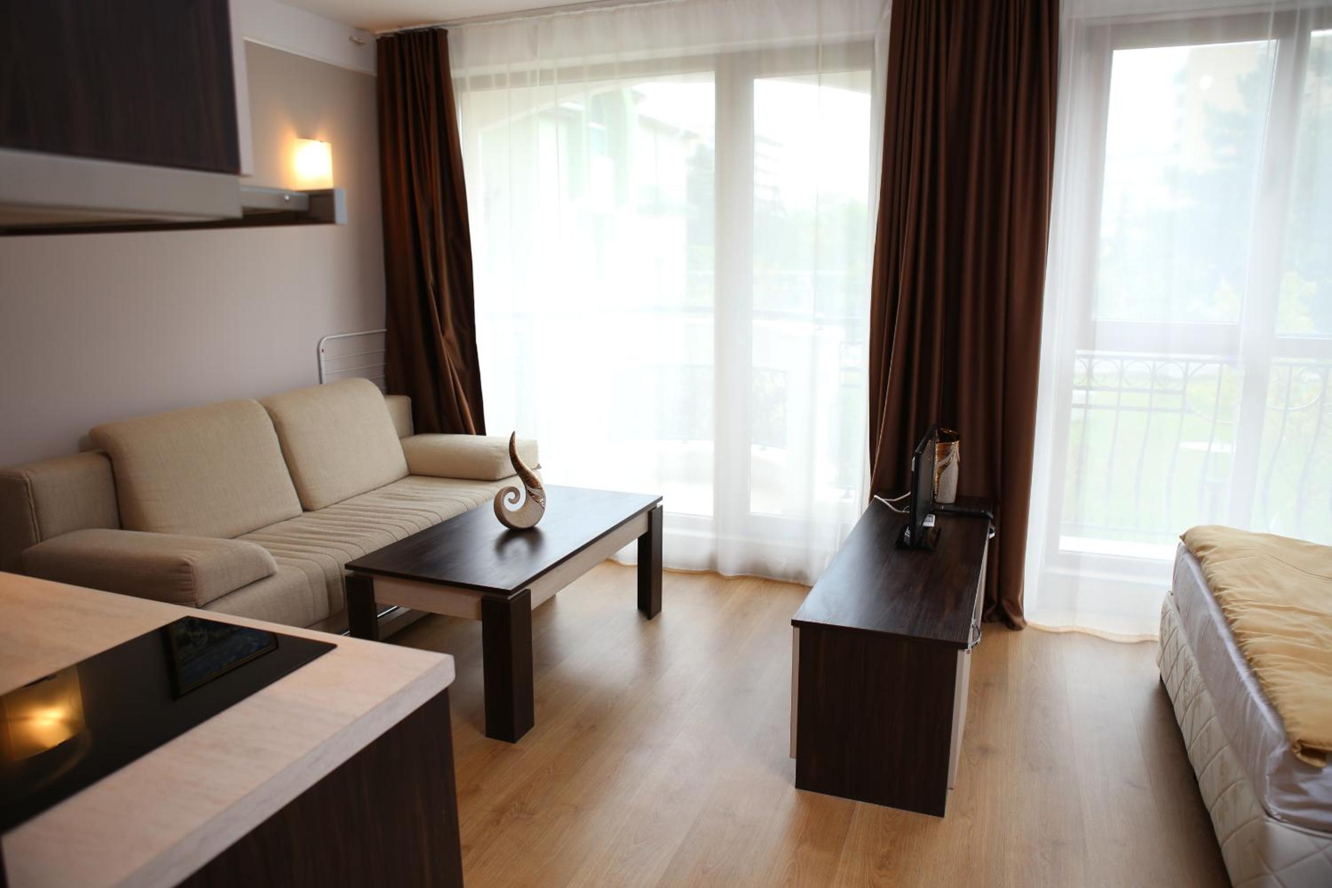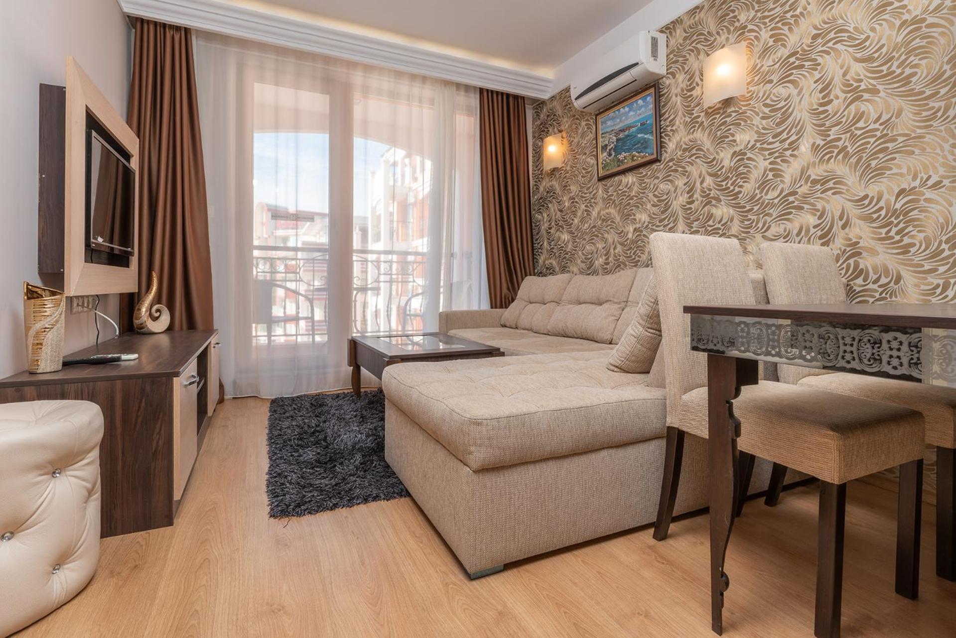 Harmony Palace apart complex offers stylish and comfortable air-conditioned rooms with free WiFi, just a short stroll away from the beautiful Sunny Beach. Each room features a flat-screen TV, a well-equipped kitchenette, and a private balcony with scenic views.