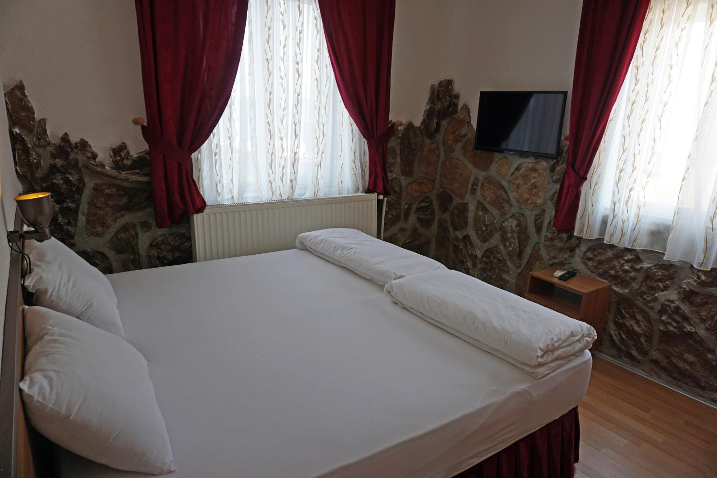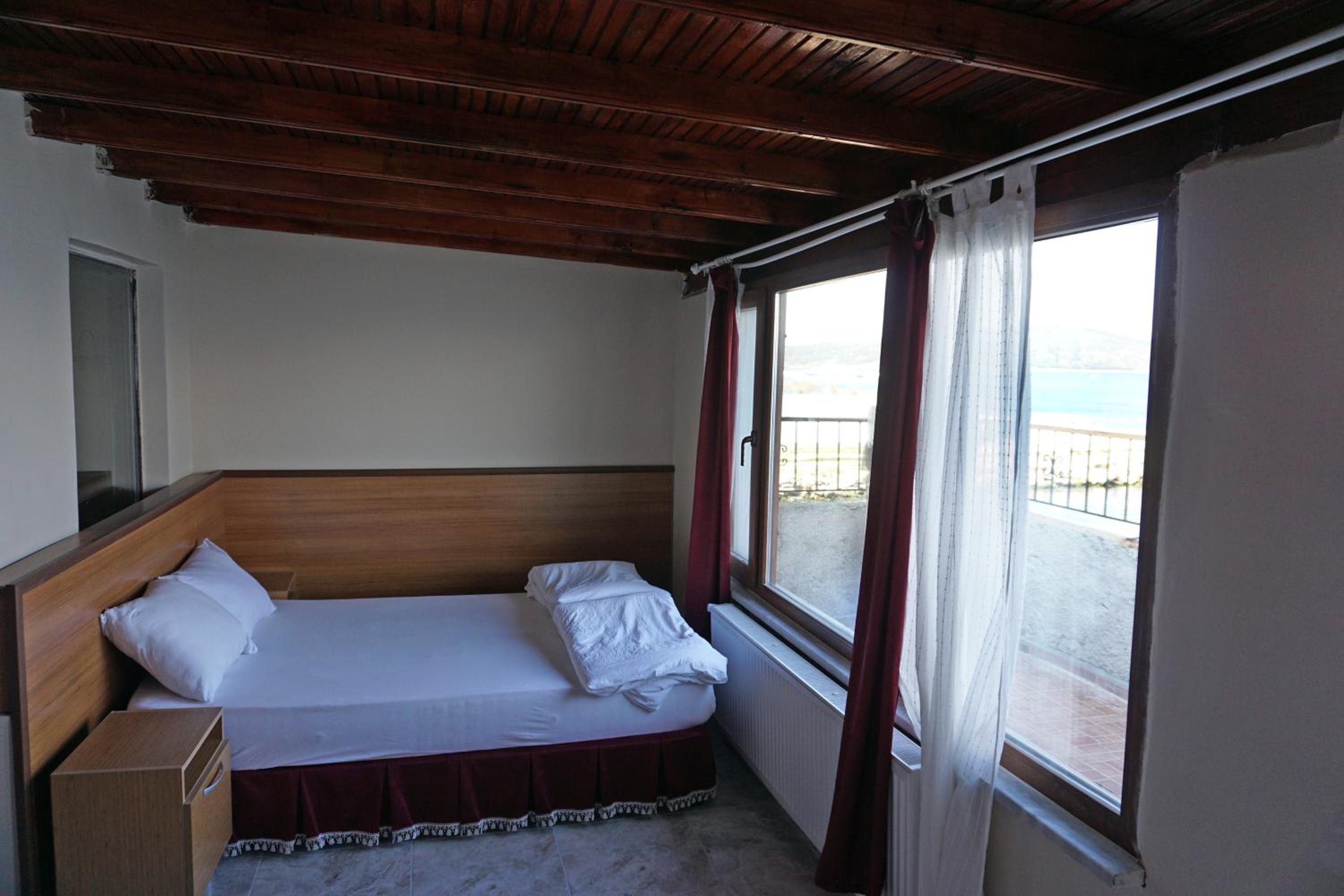 biz deniz manzaralı bir odada konakladık. Neyseki tek gece sadece uyumak için kaldığımız bir oteldi. odanın manzarası mükemmel. ama bunun dışında elle tutulur hiç iyi bir şey yoktu. odadaki metal olan her şey oksitlenmiş, sararmış... yastıklarda koku vardı; tshirtlerimizi kılıf olarak takıp yattık. aileme fotoğraf yolladığımda balkon demirlerine yaslanmayın, çürümüş cevabı verdiler. o kadar vasattı. Kahvaltı ayrıca kötü; her şey kurumuş, yumuşamış; sinekli - karanlık bir ortamda servis yapılıyor. verdiğimiz paraya üzüldüm. arabada uyusak daha konforlu olabilirdik.