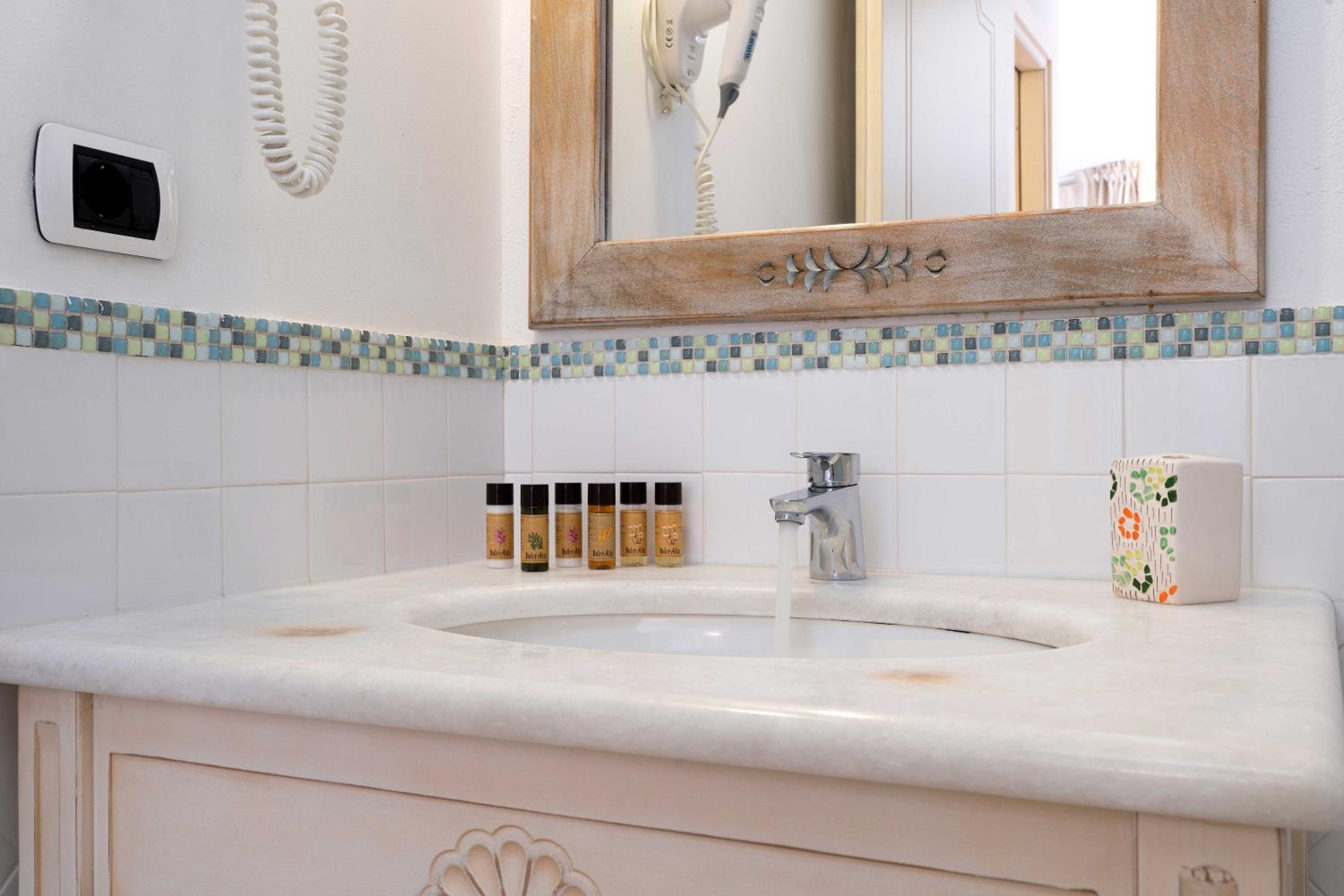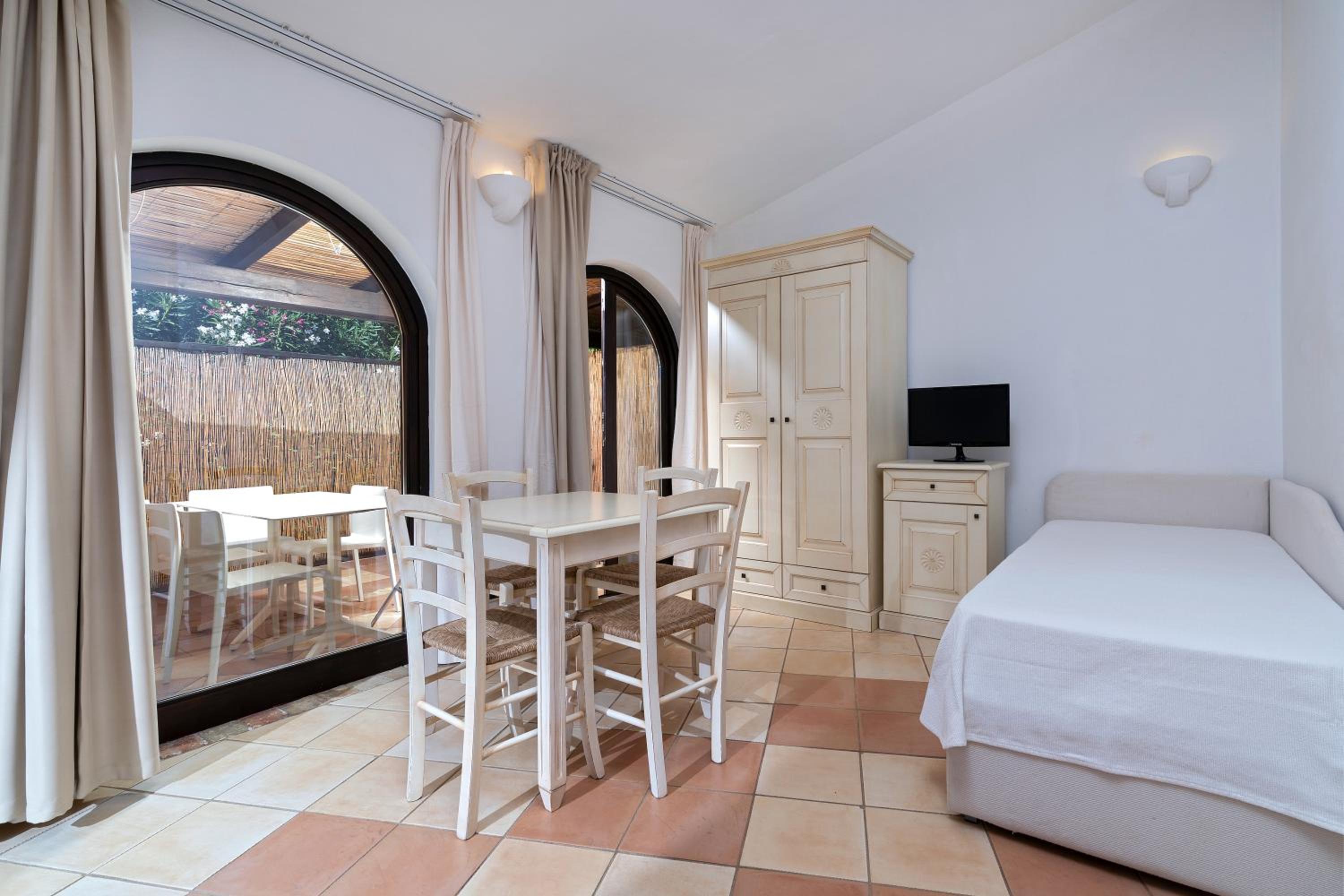 Indulge in the beauty of Sardinian decor as you unwind in your tastefully furnished apartment, complete with a private terrace or balcony for you to soak in the serene atmosphere and lush green surroundings.