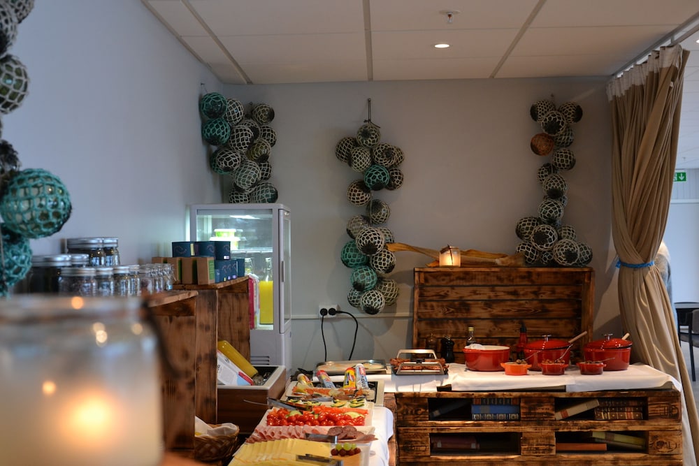 Passer ikke til beskrivelsen på Hotel.com. Ingen restaurant på hotellet. Ingen øl/vann chips eller noe å få kjøpt i resepsjonen. Frokosten er den mest simple jeg har sett. Hyggelig personale, men tror de bare har en sommerjobb der