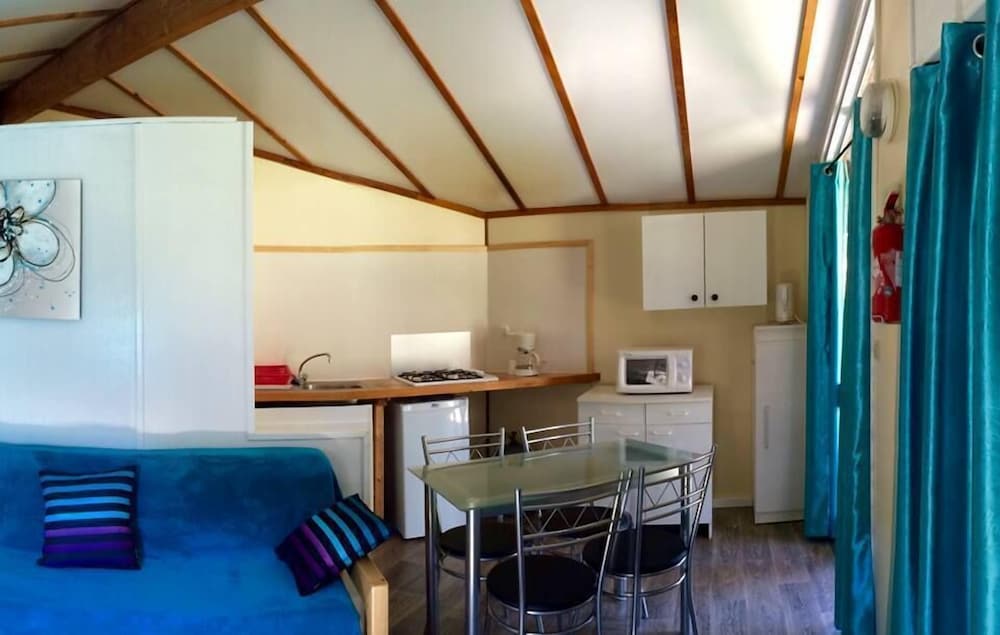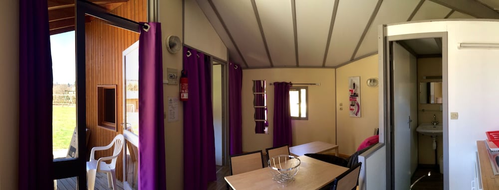 Ces petits chalets sont parfaits pour des vacances en famille, avec une plage et une riviere sous surveillance juste en dessous de l'établissement et une balançoire et bac à sable à disposition. La direction est au petit soin. Je recommande les yeux fermés