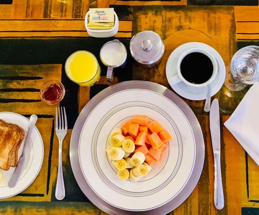 We got there pretty late but the gentleman at the reception was very welcoming. We were a large party of 11. The rooms were spacious and the beds were comfortable. The bathrooms were clean. The only issue we encountered was that 1 out of the 3 rooms we had the a/c didn’t work properly. Toast and oJ is what’s included for breakfast but for $5 extra per person you get a traditional breakfast and it was goooodddd!! Overall a good experience will def. stay there again.