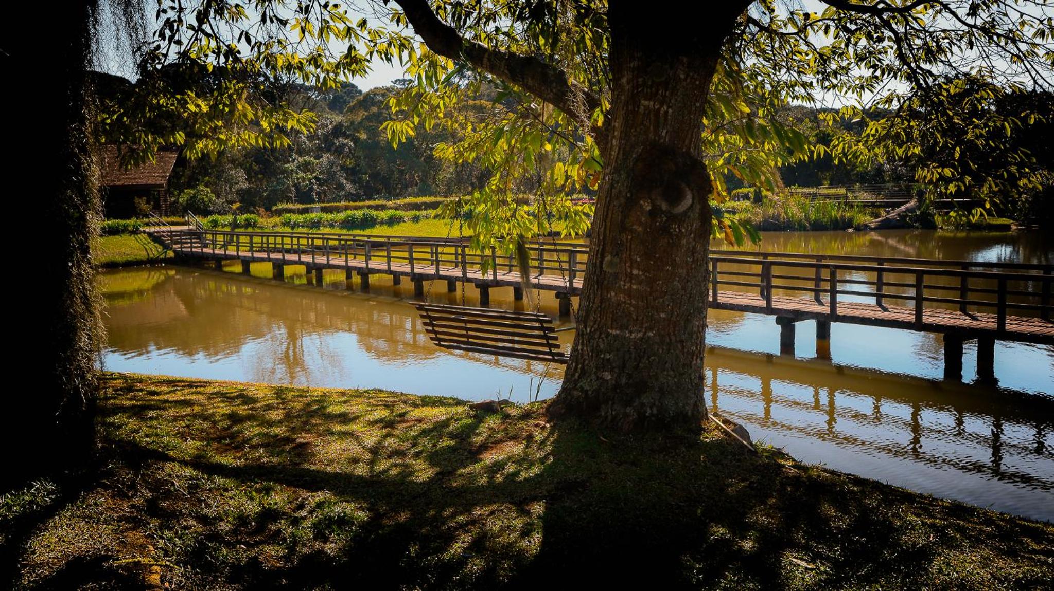 Bela paisagem, proporciona passeios e a contemplação dos jardins e lago