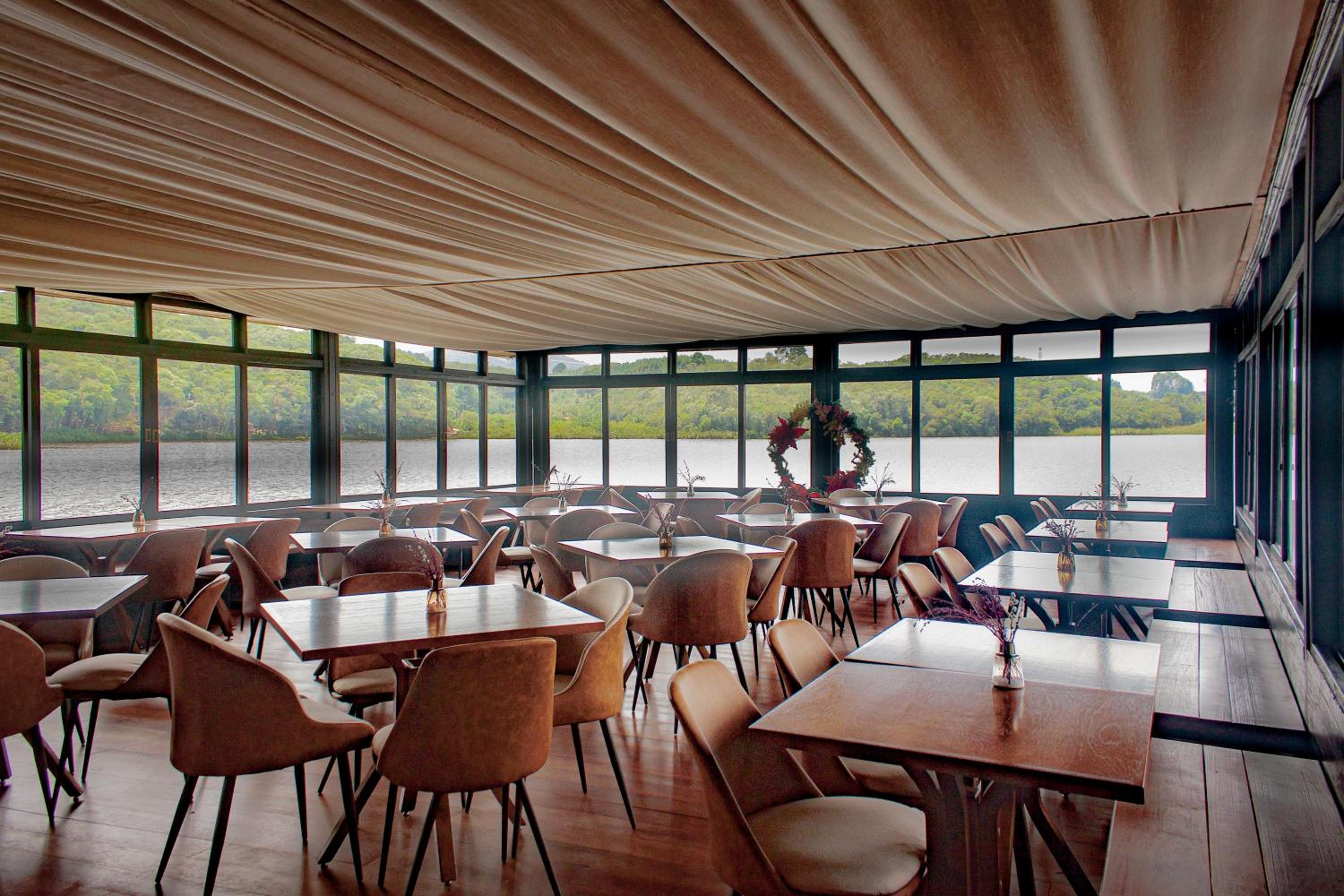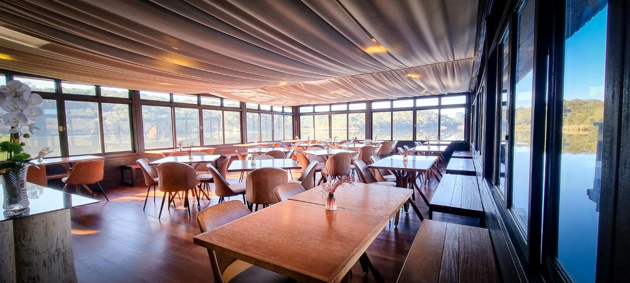 Restaurante no lago possui uma linda vista e serviço atencioso