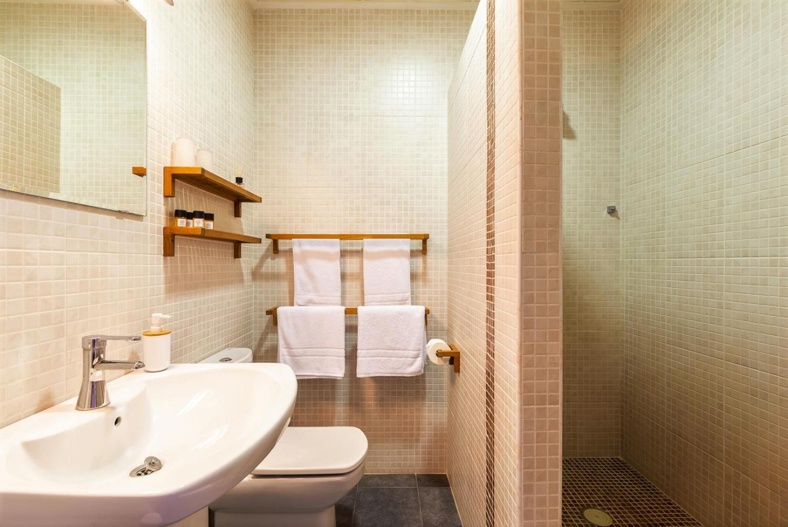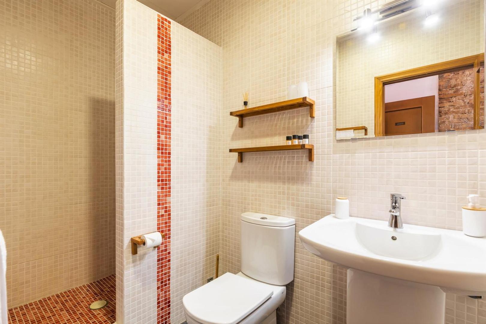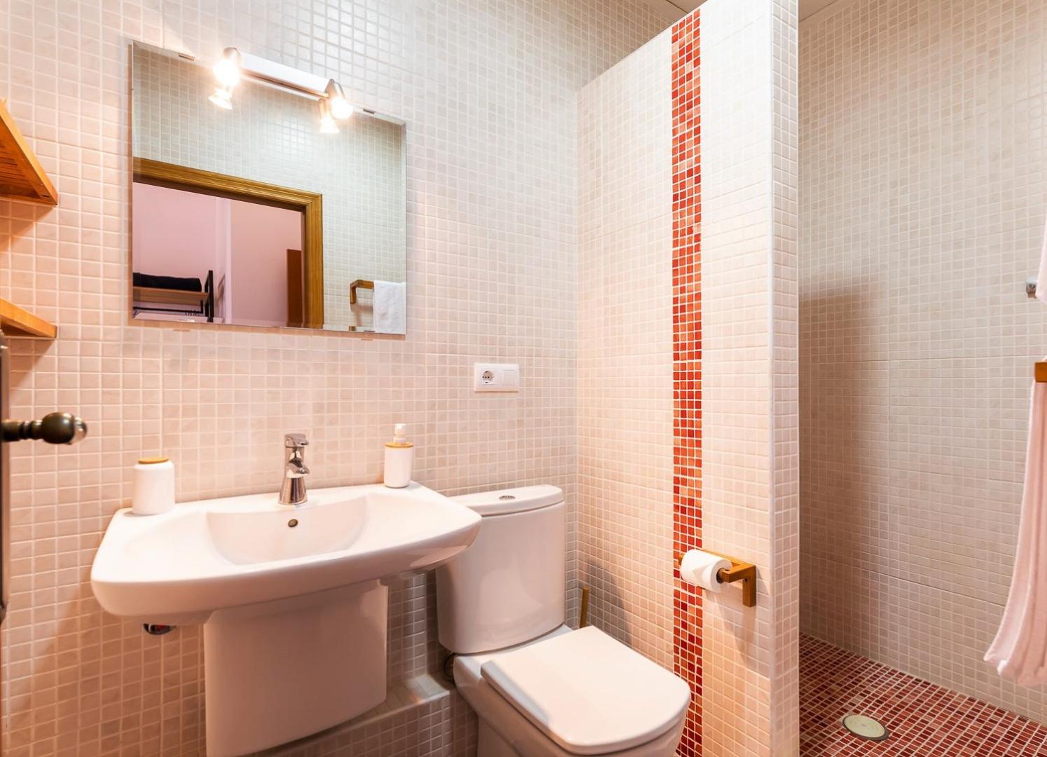 Modern shower and bathroom.