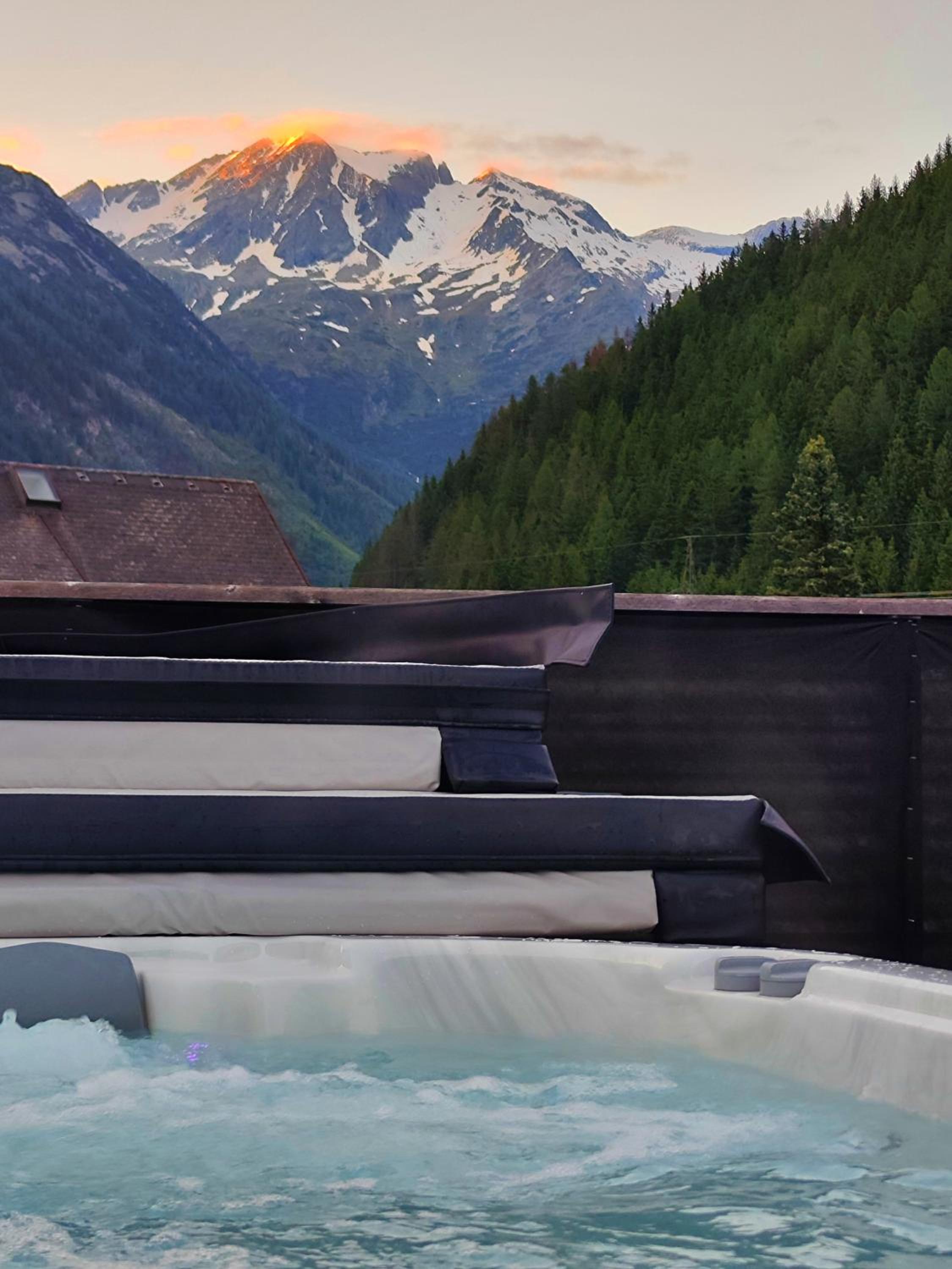 Indulge in relaxation at the spa area of Hotel Bergkristall, featuring a variety of saunas and infrared benches, perfect for unwinding after a day of exploring the picturesque Hohe Tauern Mountains.
