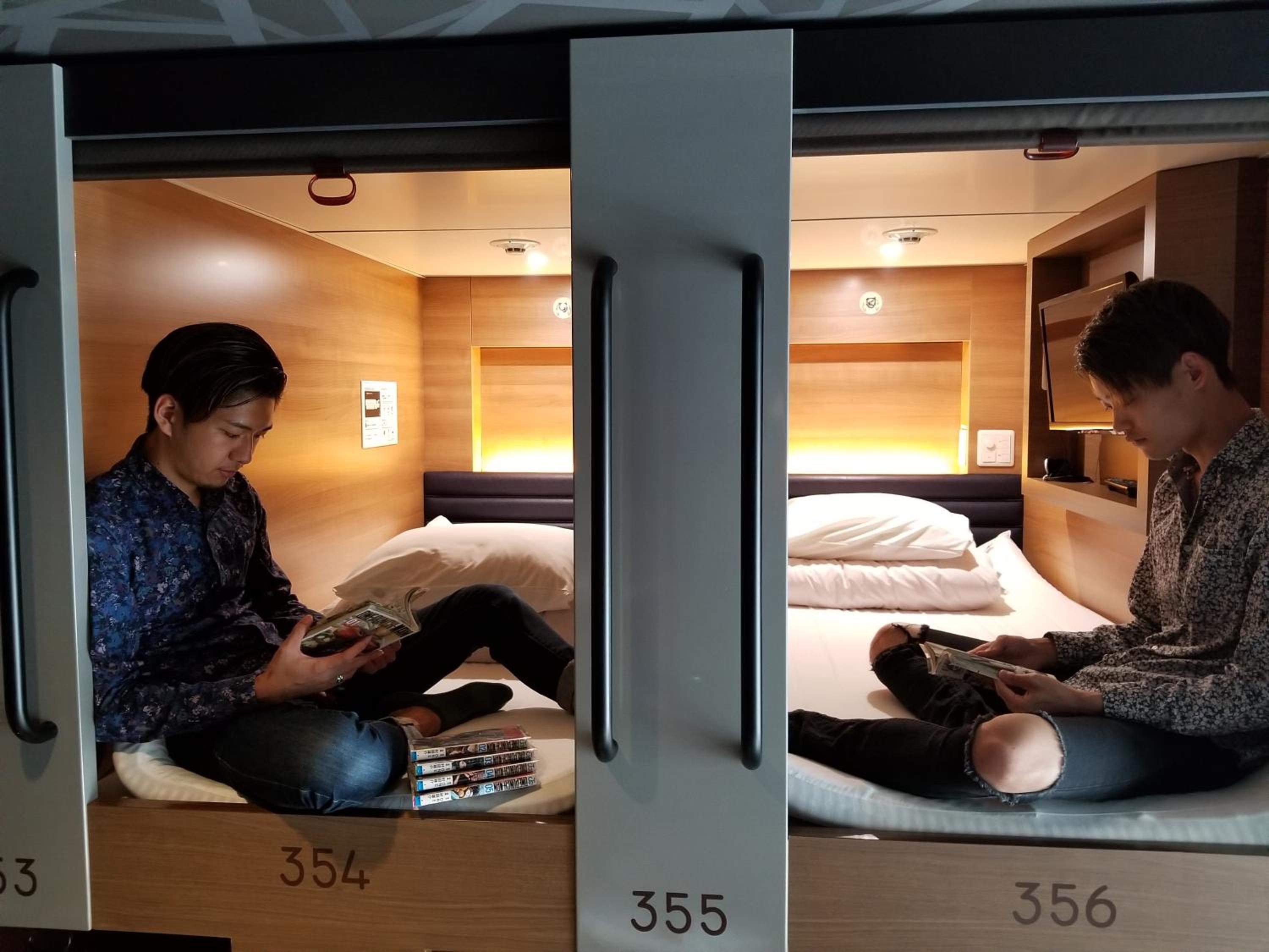Habe zum ersten Mal in einem Kapselhotel übernachtet und war positiv überrascht. Alles super sauber und gut organisiert. Einen Ofuro (heißes Bad) gibt’s auch, ebenso einen Aufenthaltsraum mit kostenlosen Getränken, wie Tee und Kaffee.