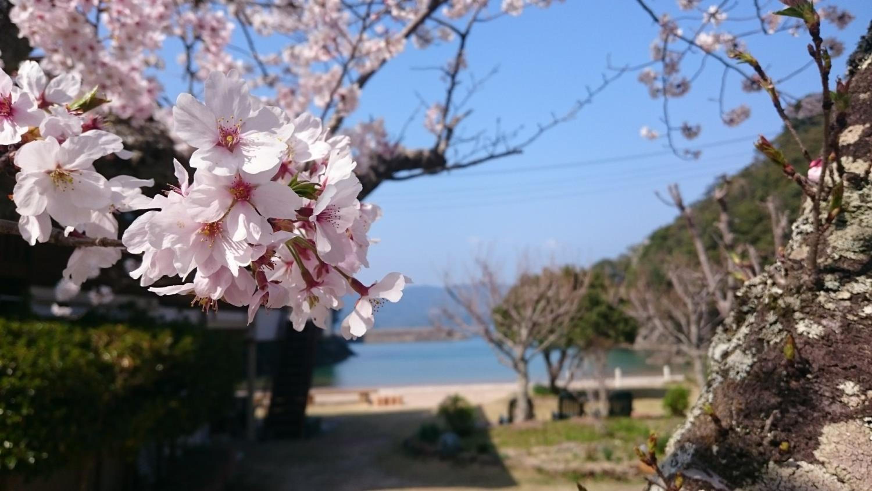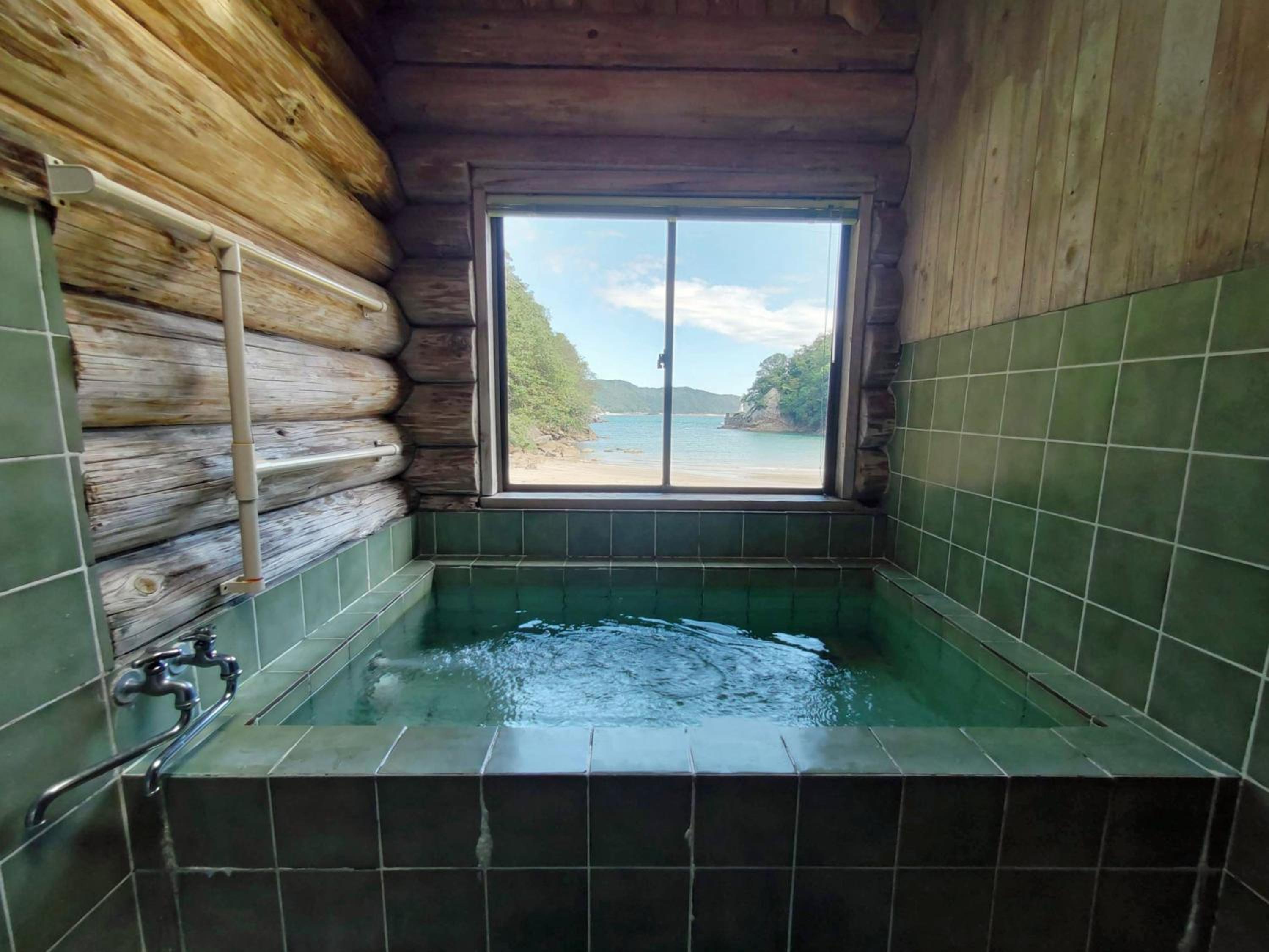 Le onsen et la petite plage .le logement est joli et confortable