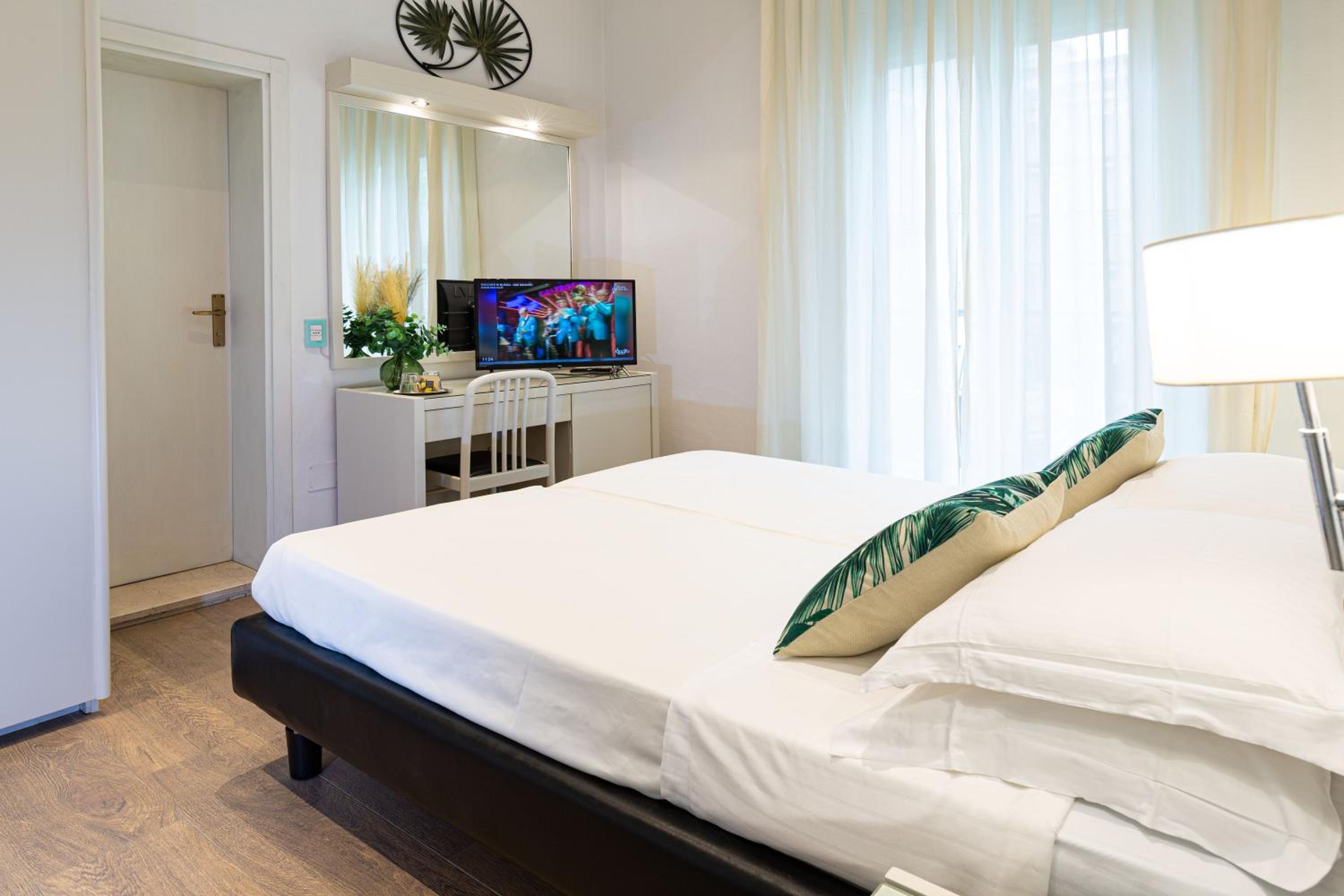 la struttura si trova praticamente in riva al mare (è l'ultimo palazzo prima della sabbia). è dotato di un parcheggio privato non sufficiente per tutte le vetture degli ospiti ma è comunque convenzionato con altra struttura messa a disposizione gratuitamente che però si trova a circa 800mt di distanza, non comodissimo. camera non grandissima, negli standard della riviera, in discrete condizioni. bagno analogamente non molto grande ma con una bella doccia. la nostra camera aveva anche un piccolo terrazzino. colazione media, senza infamia e senza lode. non abbiamo usufruito di altri pasti. l'hotel è convenzionato con lo stabilimento balneare limitrofo ed ha una piscina riscaldata interna, noi per altri impegni non abbiamo usufruito di questi servizi. personale super accogliente e disponibile. la posizione è comodissima per il mare, non tantissimo per il centro che è comunque a 500mt di distanza