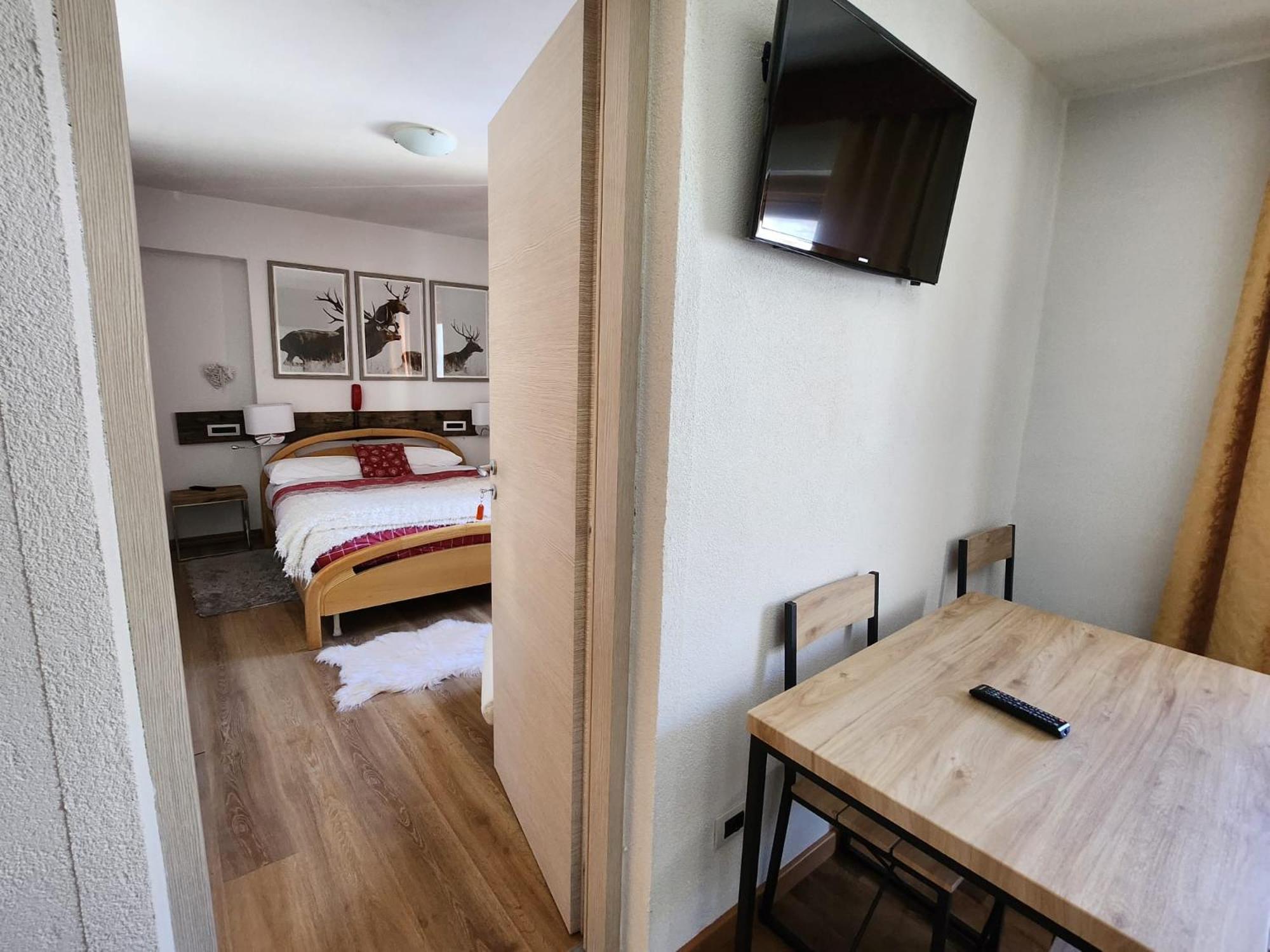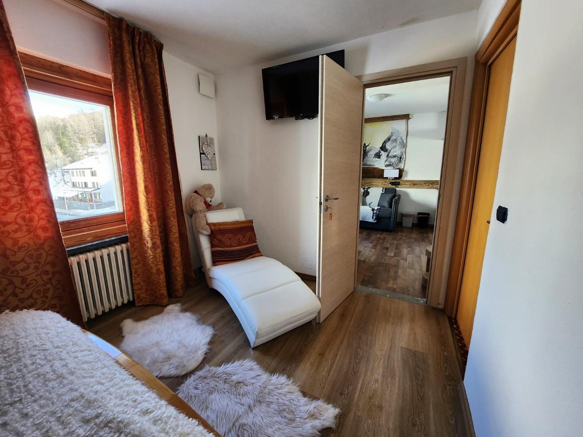 A very nice family hotel, ultra-hospitable multiligual family running it. Big apartment, great view, kitchenette with everything needed. Three minutes by car to a parking lot near pistas (do not choose one close to main skilift, go 270 degrees to the left at the roundaboout at the entrance to the village)
