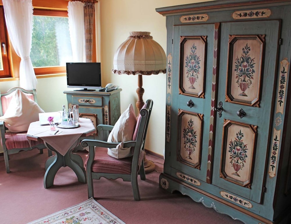 Hotel restaurant was closed but the friendly owner got us a table at the nearby bar, Restaurant Klosterstüble, where the food and company was excellent. Room decoration was sweet and the balcony nice.