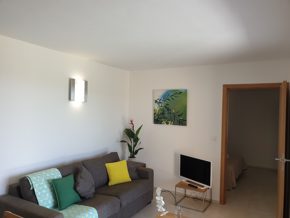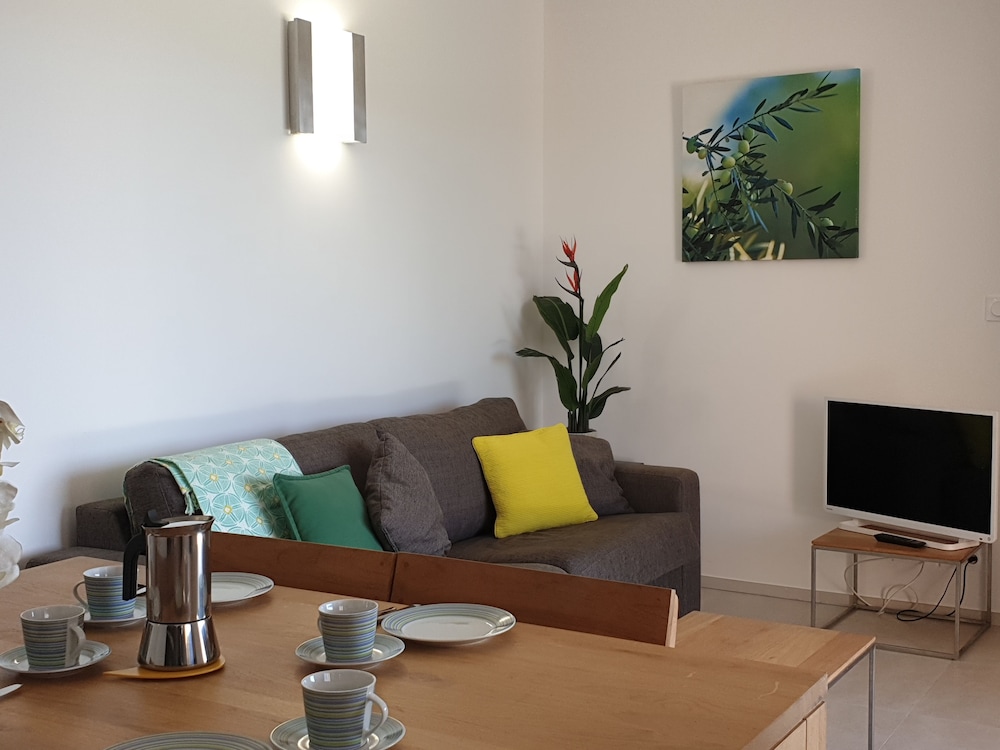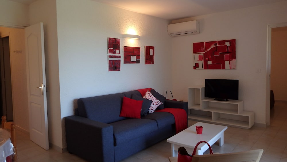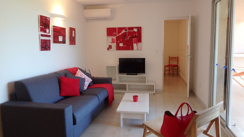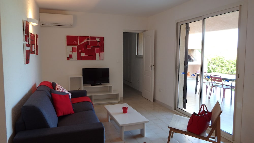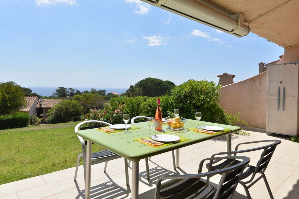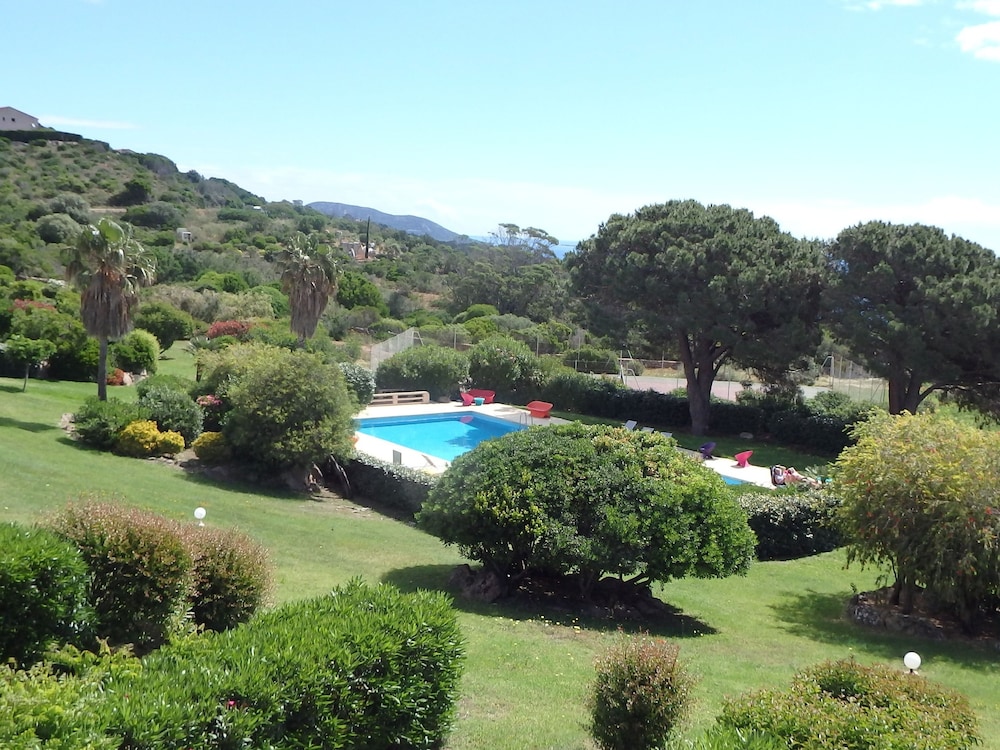Appartement de belle qualité avec tout le nécessaire, très bel accueil, vue incroyable sur la plage de palombagia, piscine immense et terrain de tennis.