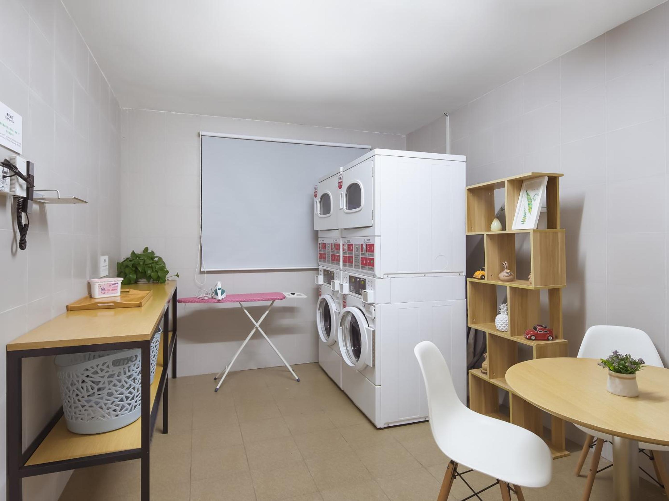 Есть стиральная и сушильная машина (оплата вичатом) и утюг.