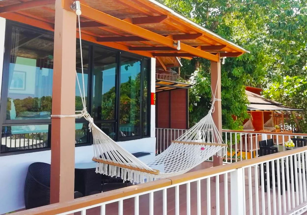 Room was nice and clean, good air conditioning. Amazing view from the balcony with our private hammock and small table with chairs. We liked the fact that the place was located in the end of the beach and on the hillside as this made it calmer and gave us some space from the quite busy beach area closer to the walking street. Good to know, as the place is on a hillside, there are a lot of stairs. Staff was helpful and carried the luggage up and down these. Bathroom was a bit worn down but ok. Only thing that could have been better was that Wi-Fi was slow, this however led to us spending more time in the hammock reading books and talking to each other.
